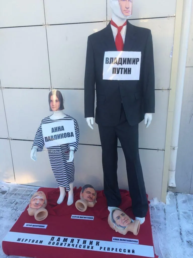 Акцію активісти "Безстрокового протесту" провели 10 березня. Вони, зокрема, встановили скульптуру, що зображає могилу президента Росії Володимира Путіна. Вона являє собою чорний надгробок з фотографією господаря Кремля та роками життя 1952-2019.