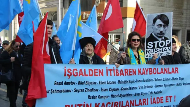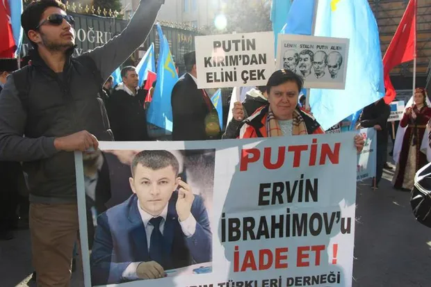 Ходою учасники протесту з плакатами "Ватан, Міллет, Кирим", "Вчора Сталін, а сьогодні Путін", "Поверніть викрадених", а також з кримськотатарськими прапорами пройшли до Генерального консульства РФ в Стамбулі.