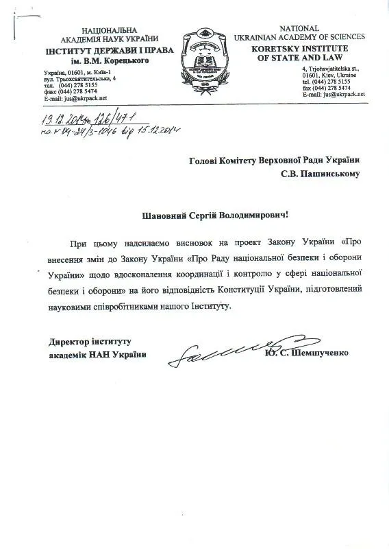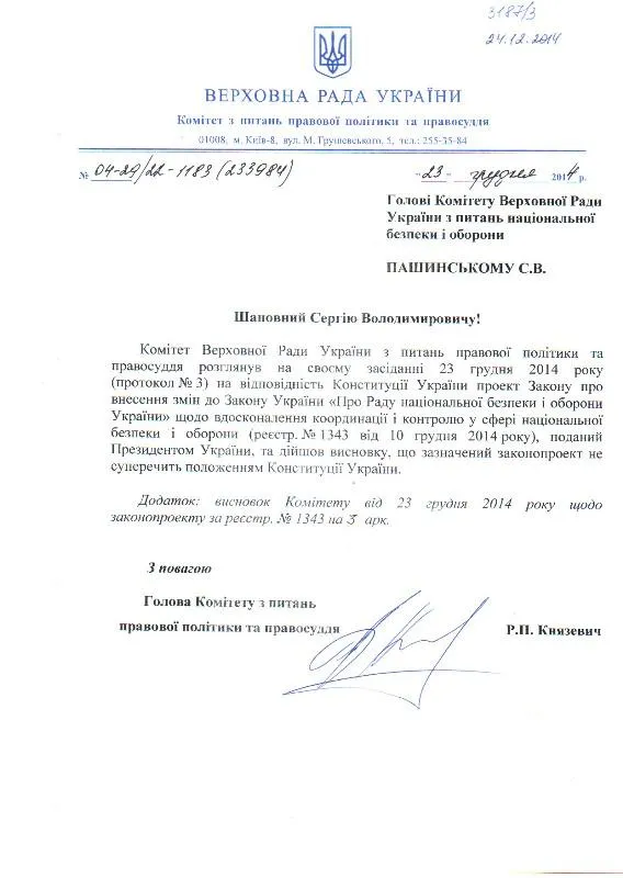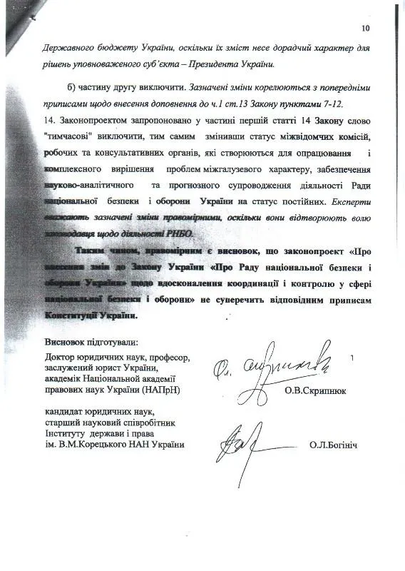 У висновку комітету наголошується, що керівництво у сферах національної безпеки та оборони здійснює Президент України, при цьому РНБО - є координаційним органом з питань нацбезпеки при ньому.
