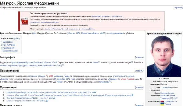 На відповідній сторінці - фото і біографія підозрюваного, а також інформація про його розшук.