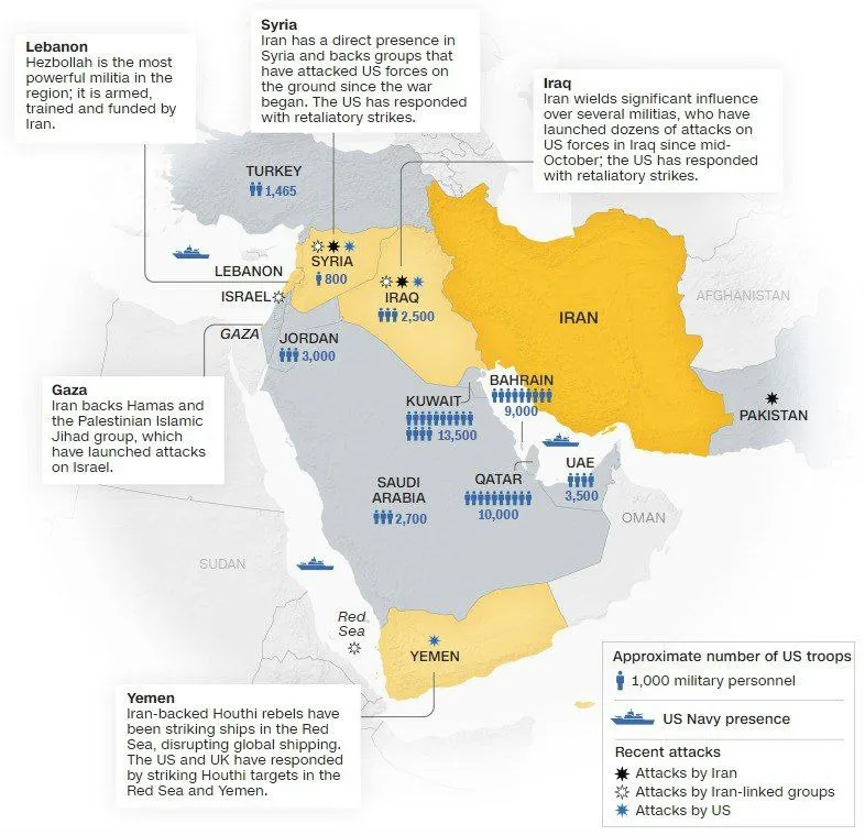 Військова присутність США на Близькому Сході / інфографіка – CNN