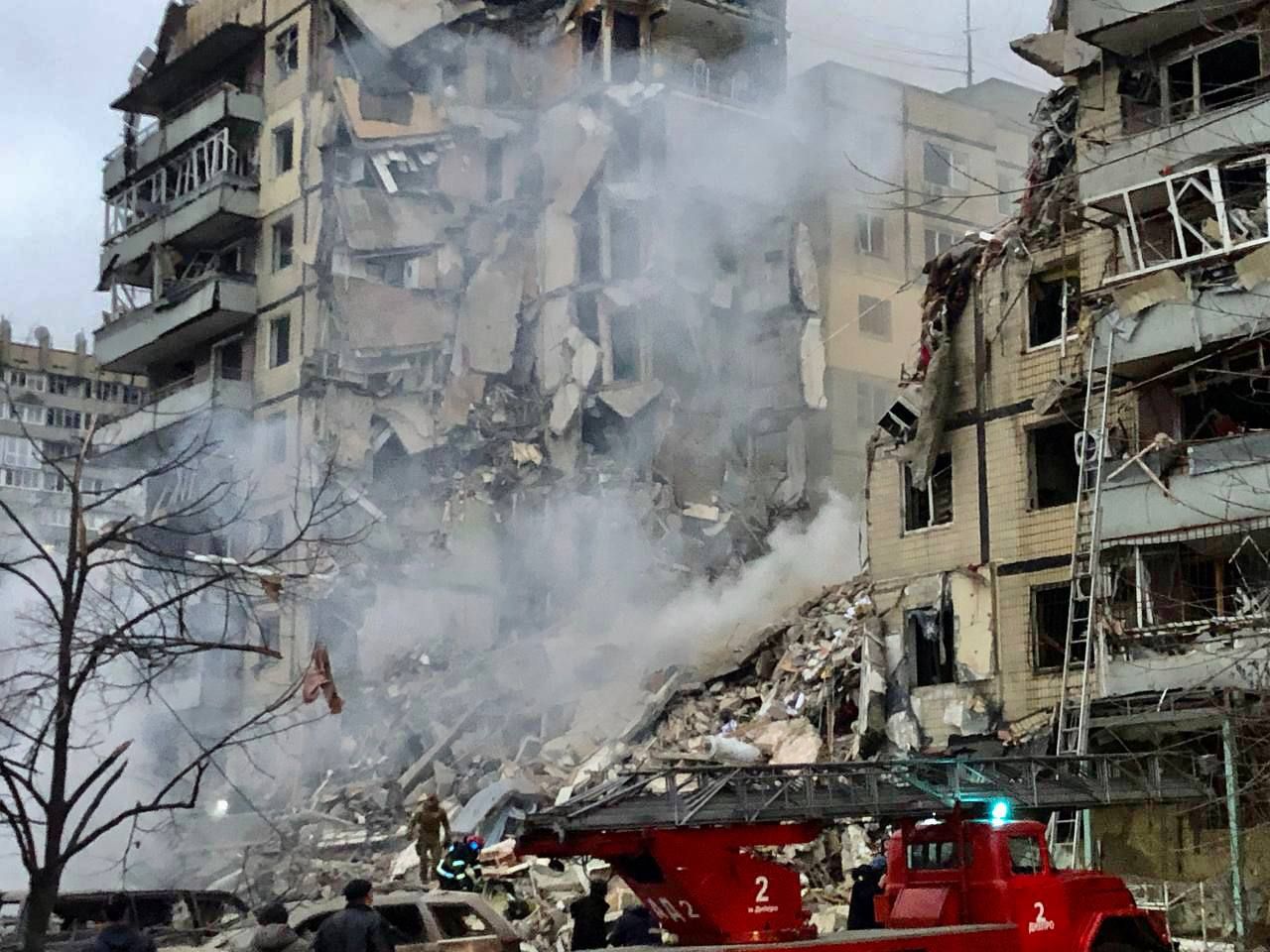 "За даними слідства, вдень 14 січня в результаті ракетної атаки ворога на місто Дніпро відбулося влучання у 9-поверховий житловий будинок. Повністю зруйновано під'їзд будинку", – мовиться у повідомленні.