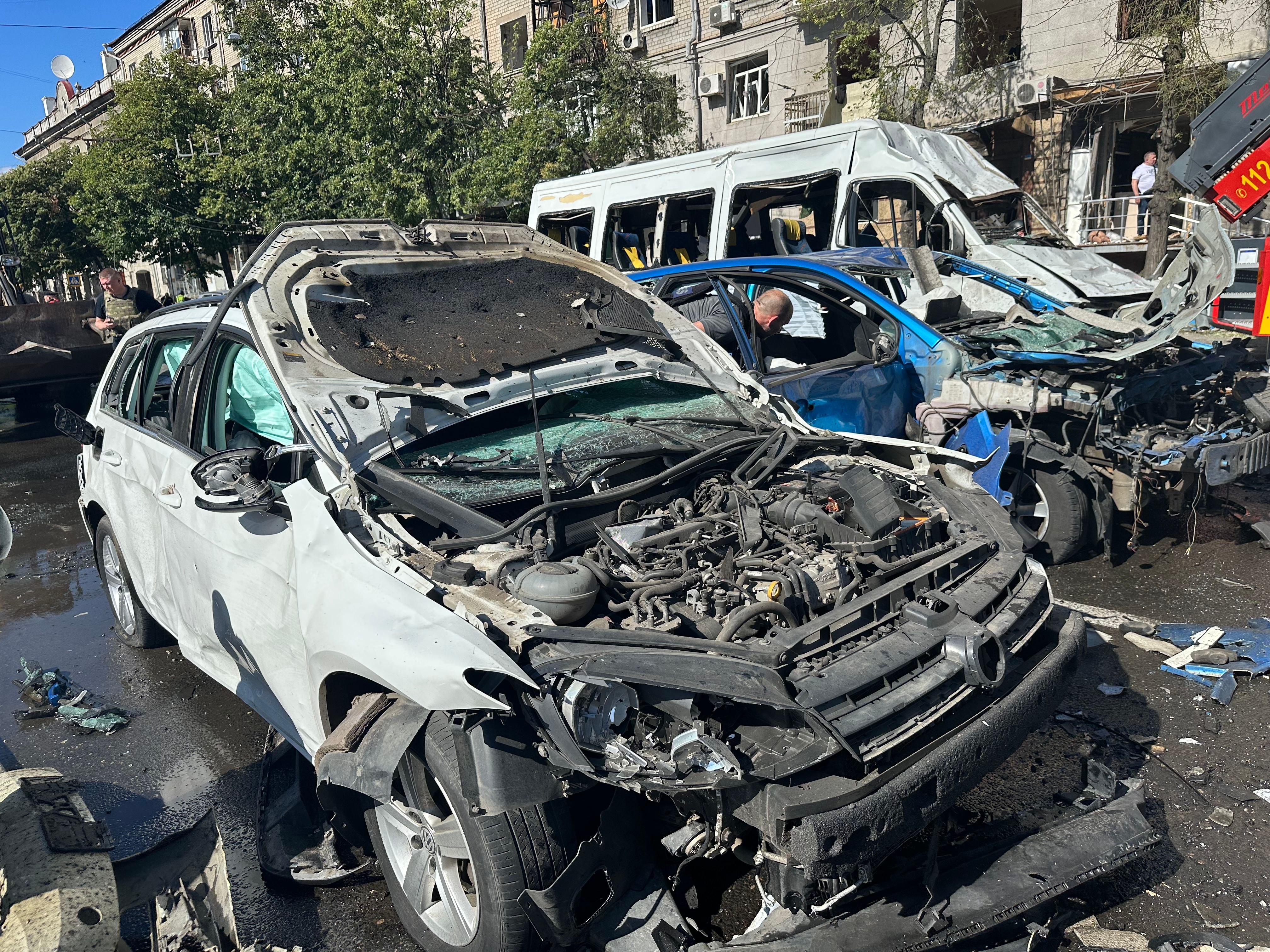 Автівки, які були припарковані поруч з будинком / Фото Анна Черненко