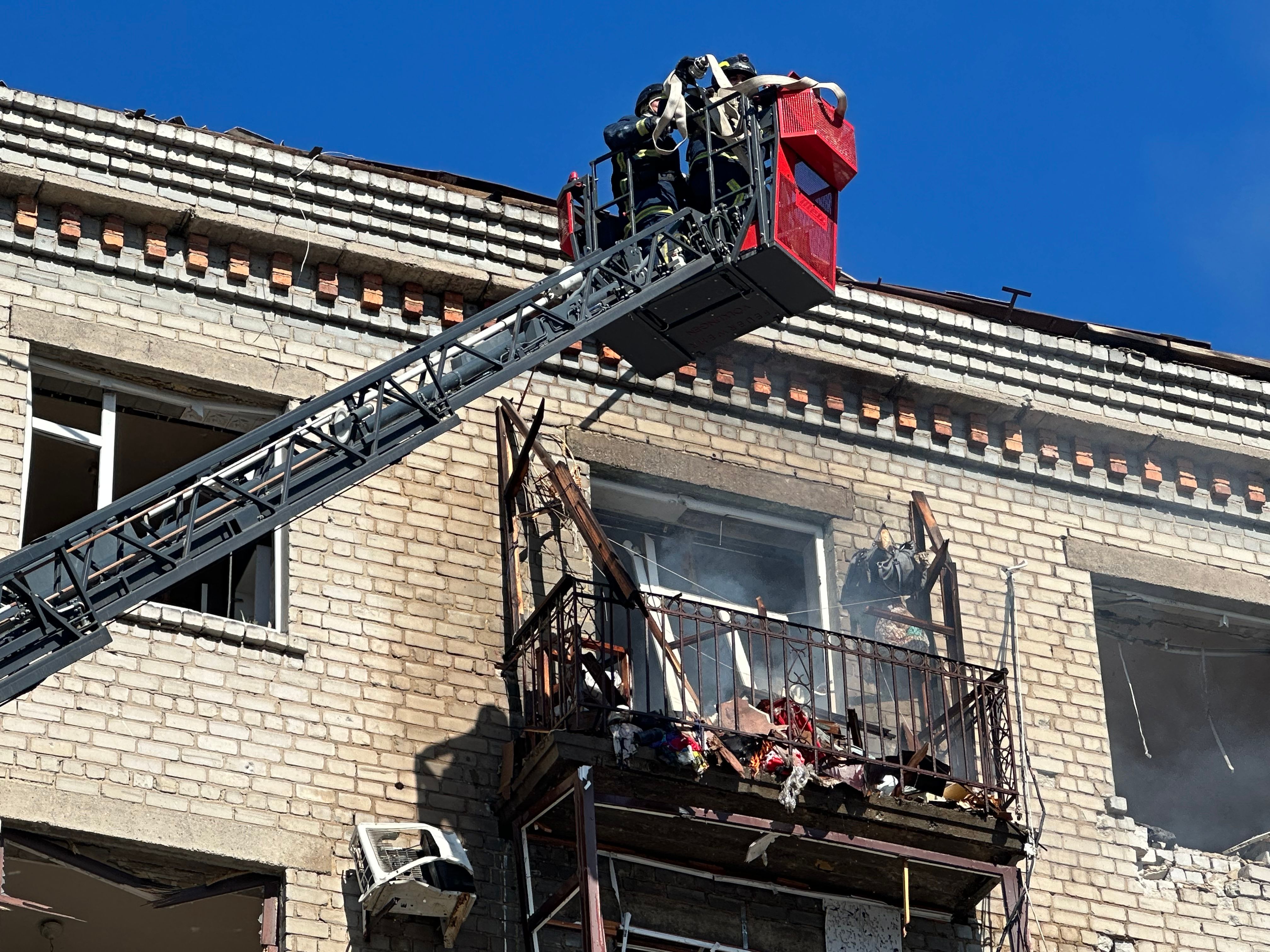 Після влучання місцями в будинку спалахнули пожежі. Рятувальники оперативно ліквідовують загоряння.