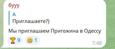 Згадали росіяни і про ватажка ПВК Вагнера Євгена Пригожина – він також боїться наступальних дій ЗСУ і вже втік з передових позицій та перебрався під Маріуполь. Окупанти ж іронічно запросили його відвідати Одесу, адже вже й самі розуміють, що успіхи їхньої армії значно скромніші, ніж намагається показати російська пропаганда.