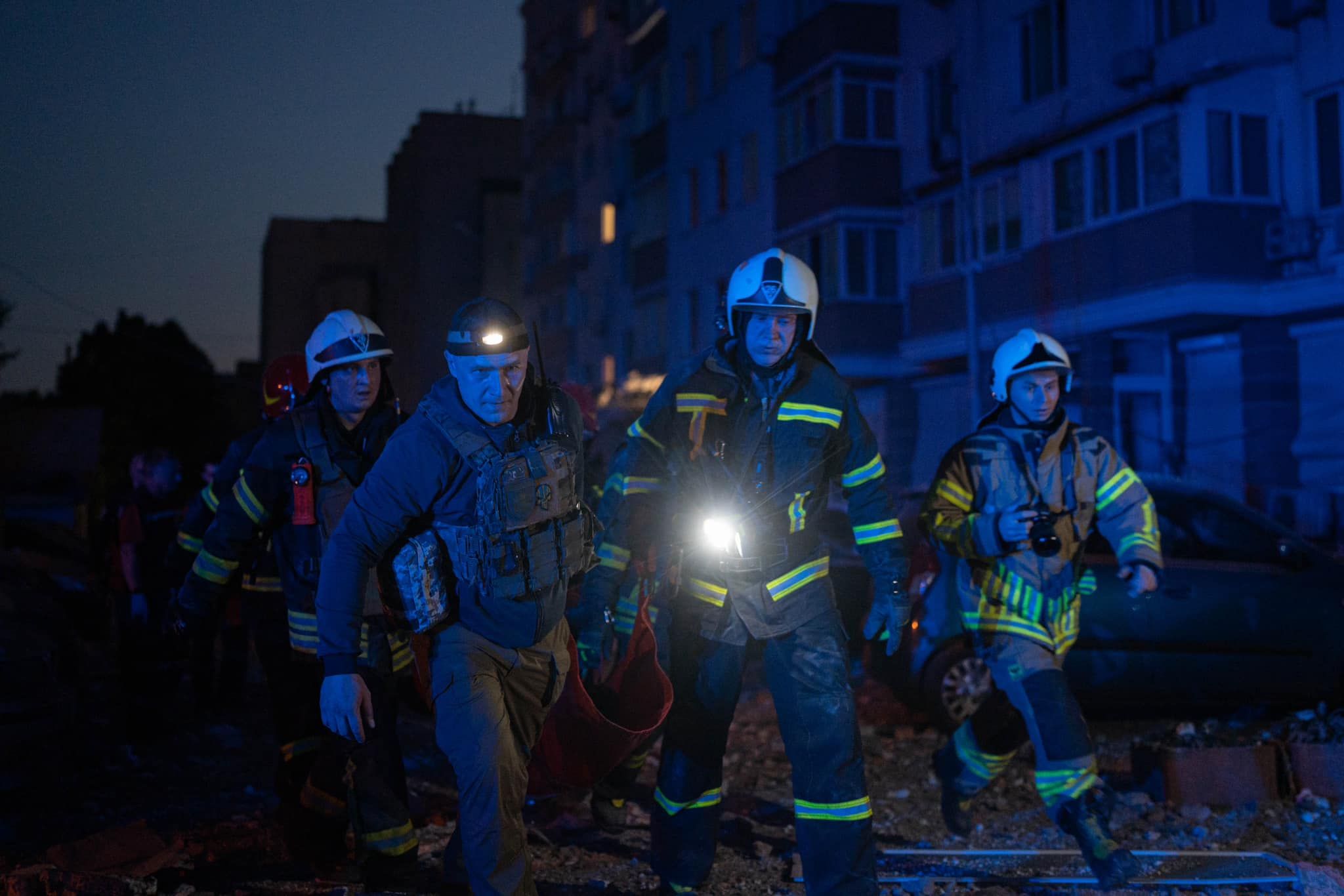Рятувальники продовжують тримати свій фронт. Лише за ніч до ліквідації наслідків атаки Києва було залучено 152 особи та понад 30 одиниць техніки.
