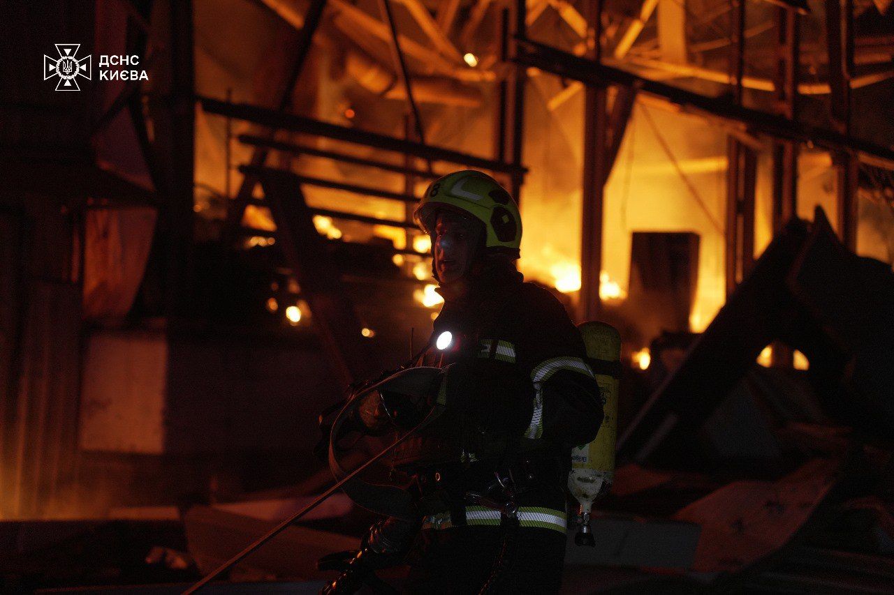 Станом на 7 годину ранку в столиці триває ліквідація наслідків. Про це повідомляє 24 Канал з посиланням на ДСНС. Рятувальники показали моторошні фото наслідків атаки.