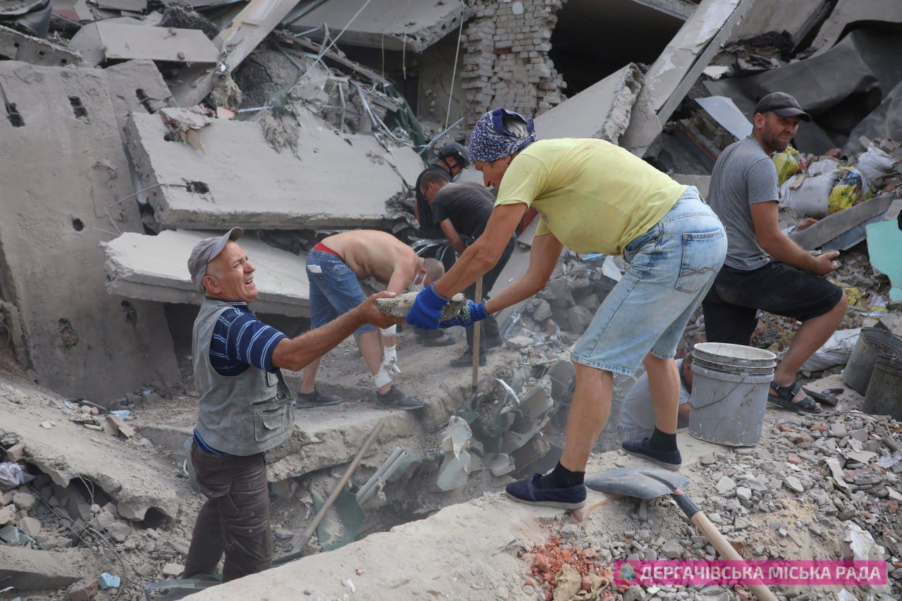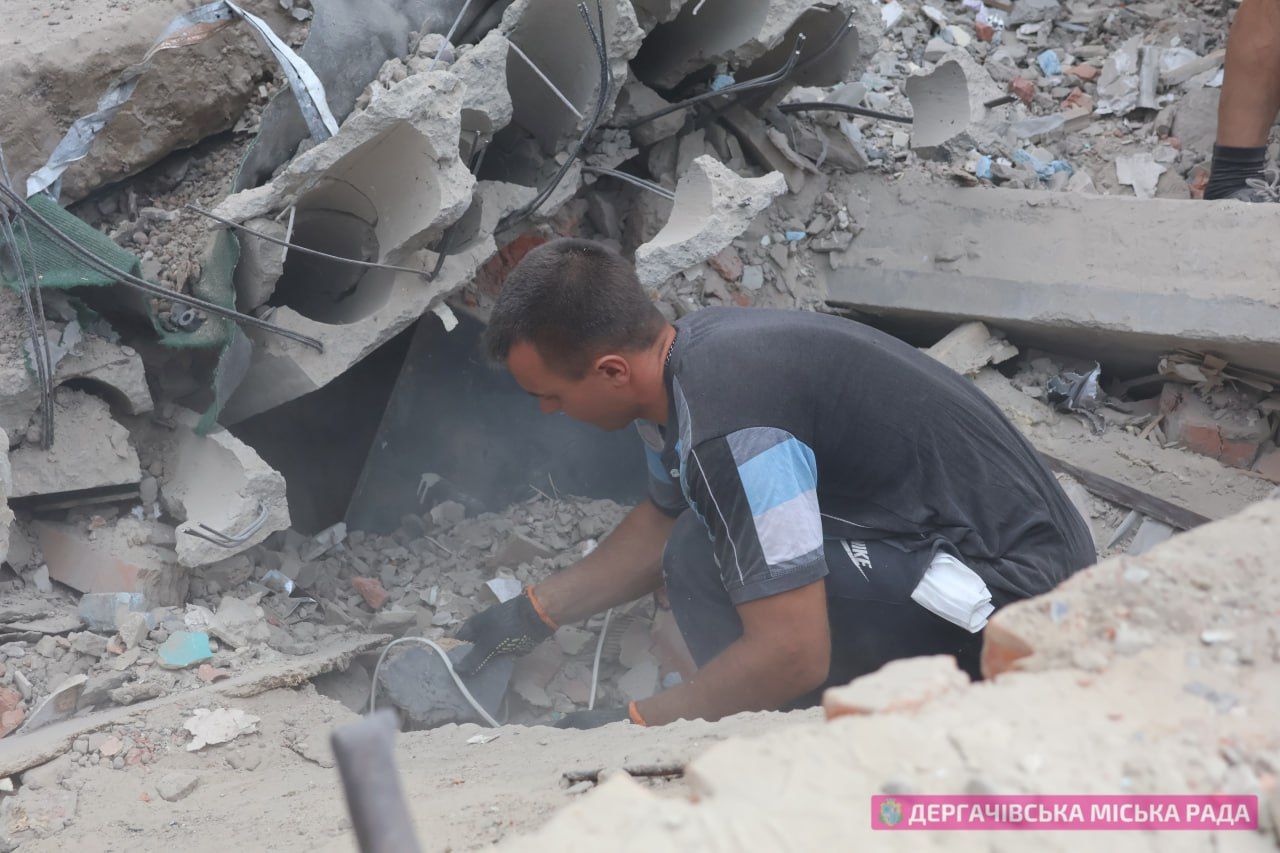 Посадовець зазначив, що на третій день розбору завалів росіяни завдавали ударів з артилерії та FPV-дронів по поліцейських, рятувальниках і місцевих жителях, які працювали на місці події. Троє поліцейських отримали контузії та були доставлені до лікарні. Також було пошкоджено техніку ДСНС і Дергачівської міської ритуальної служби. Крім того, окупанти цинічно били дронами по ритуальній машині під час евакуації тіл загиблих.