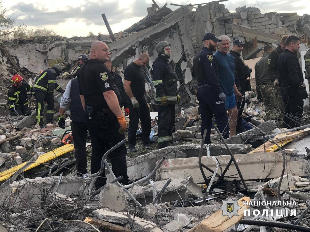 За даними глави МВС Ігоря Клименка, на місці трагедії працюють щонайменше 150 поліцейських, 75 рятувальників, 60 медиків. Станом на 17:39 5 жовтня там досі продовжують розбирати завали.