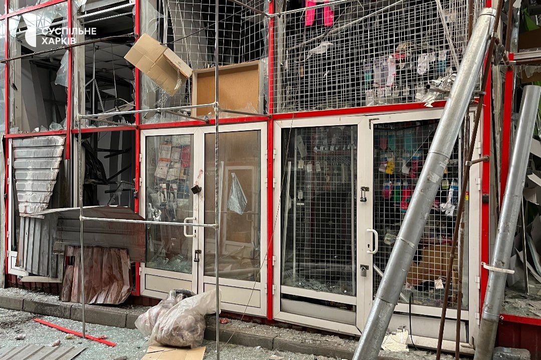 У Київському району найсуттєвіші руйнування, там БпЛА влучив в дах найбільшого ринку Харкова. Через вибух було пошкоджено десятки торгівельних павільйонів. Травмованих на місці подій немає,
