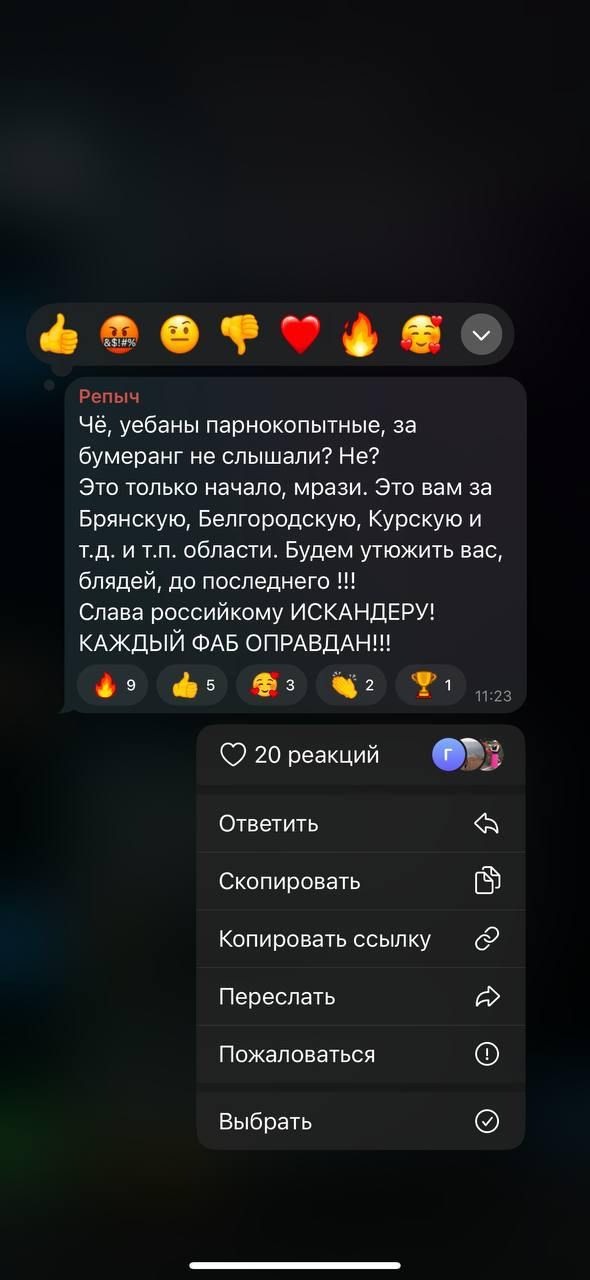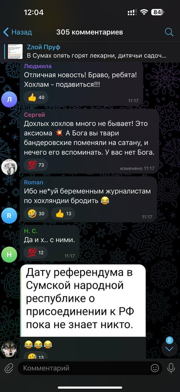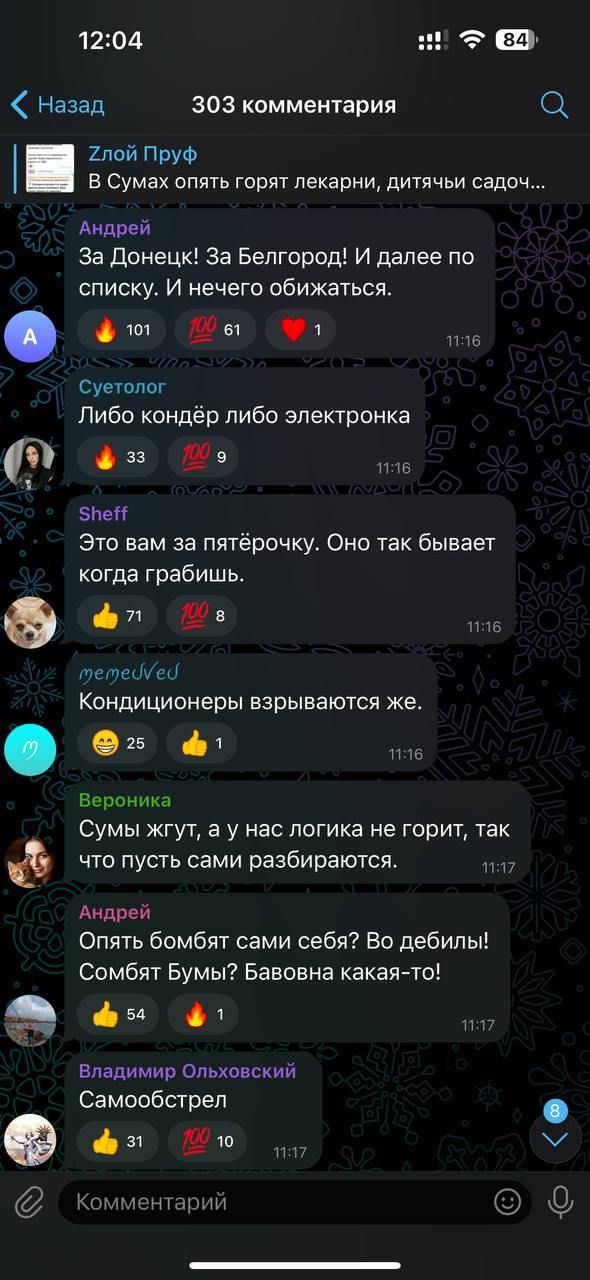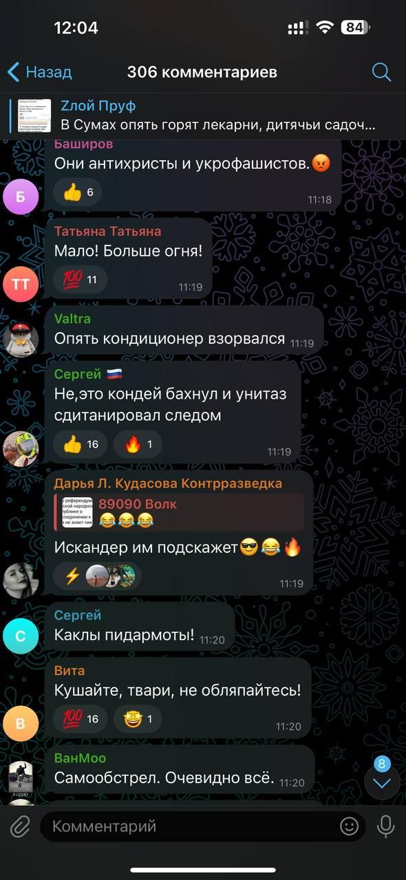 Коментарі росіян з приводу обстрілу Сум / Скриншот соцмережі 18+, дописи містять нецензурну лексику