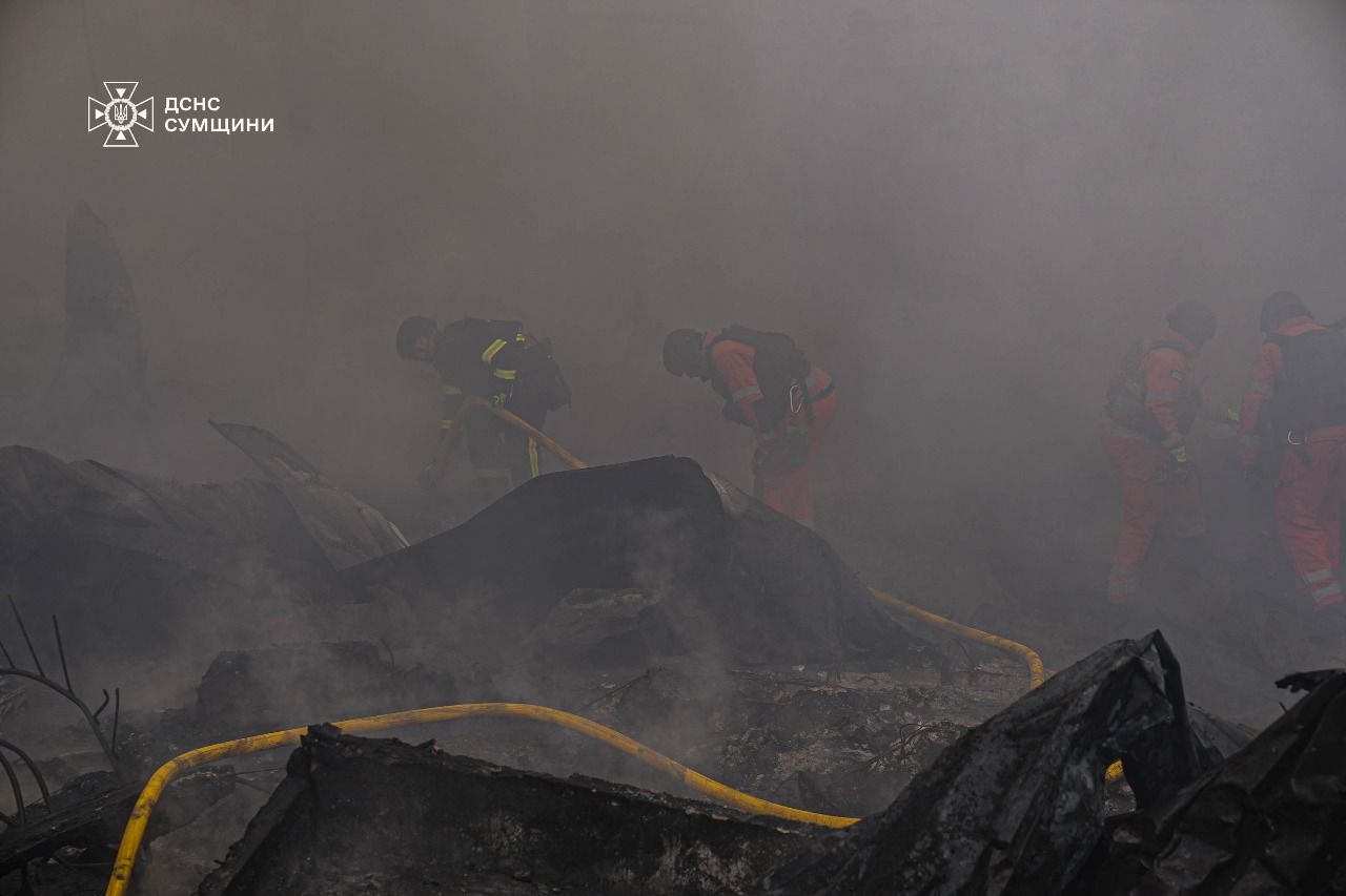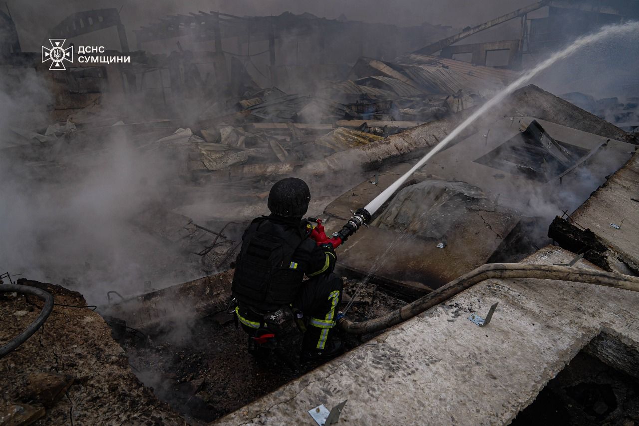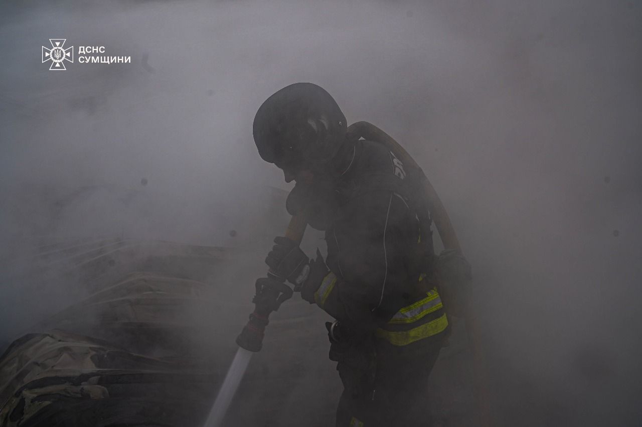 У Сумській області загасили масштабну пожежу, що виникла після атаки / Фото ДСНС