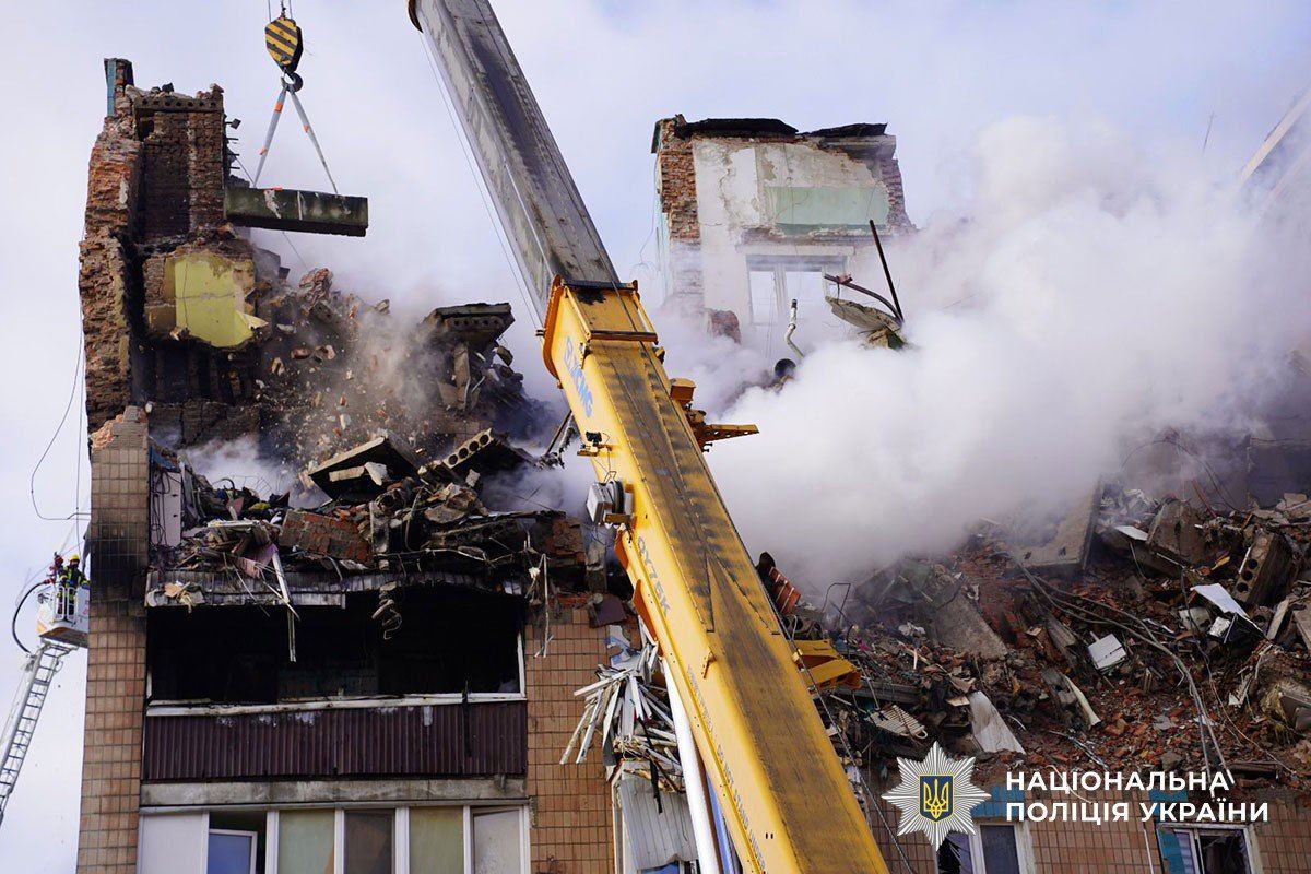 Раніше в Нацполіції розповіли, що пошкоджено 2 житлові дев'ятиповерхівки. В одній виникла пожежа, а в іншій є руйнування з 3-го по 9-й поверх.