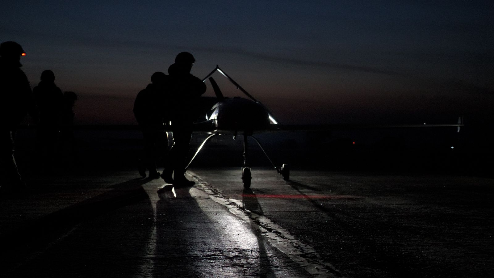 Уночі військові Головного управління розвідки України готували до бойового вильоту близько десяти ударних дронів. Усі солдати були одягнені в чорне, дотримуючись заходів маскування перед проведенням місії. Один за одним вони взлетіли у нічне небо.