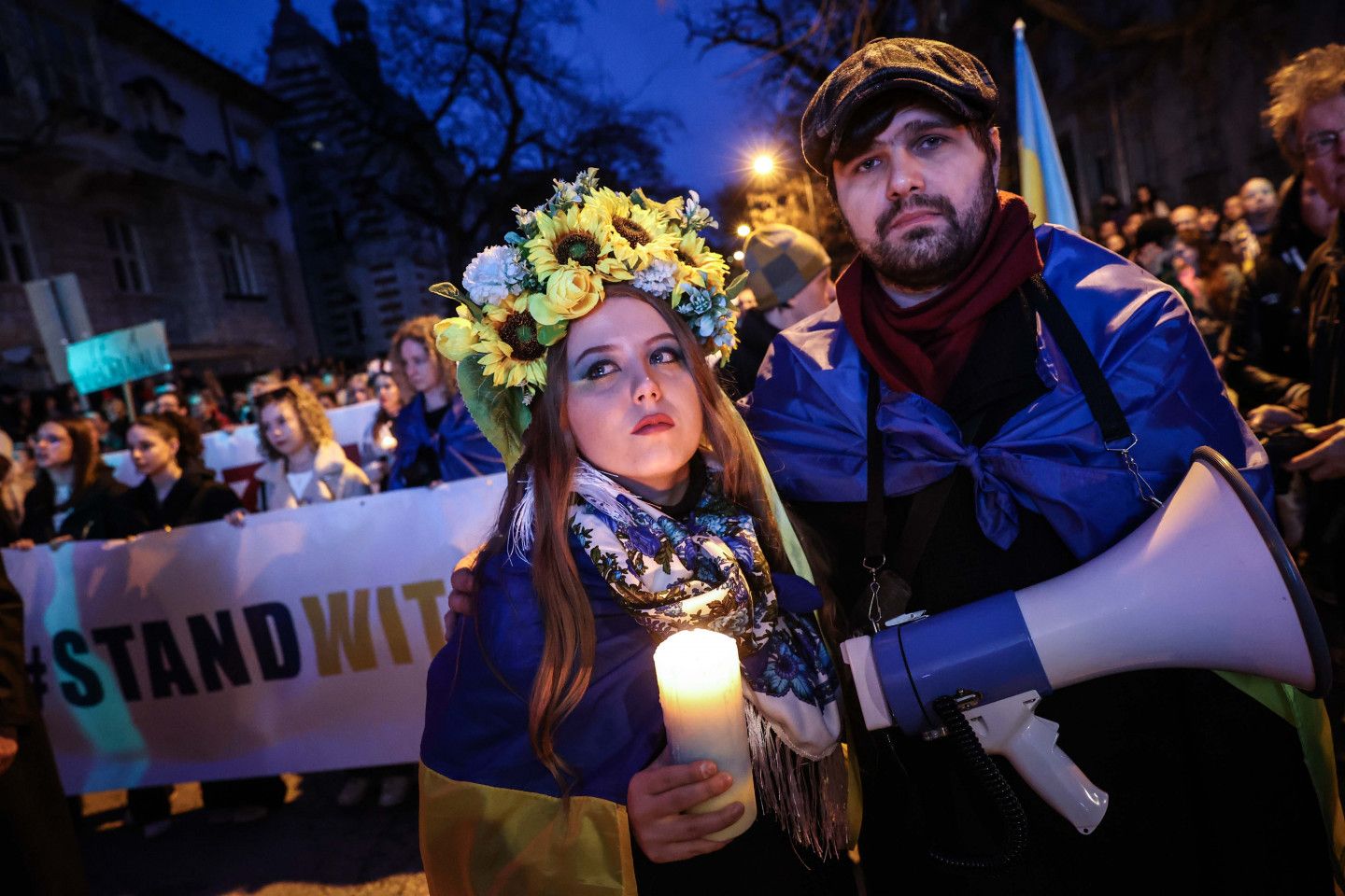 Проукраїнська акція в Угорщині 24 лютого 2024 року / Фото: Huszti István / Telex.hu