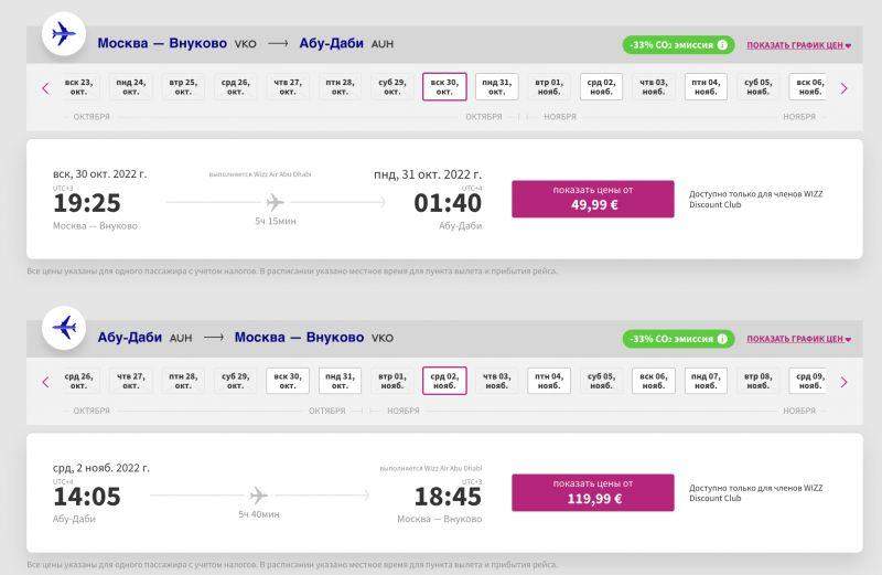 Квитки за напрямком Москва – Абу-Дабі / сайт Wizz Air
