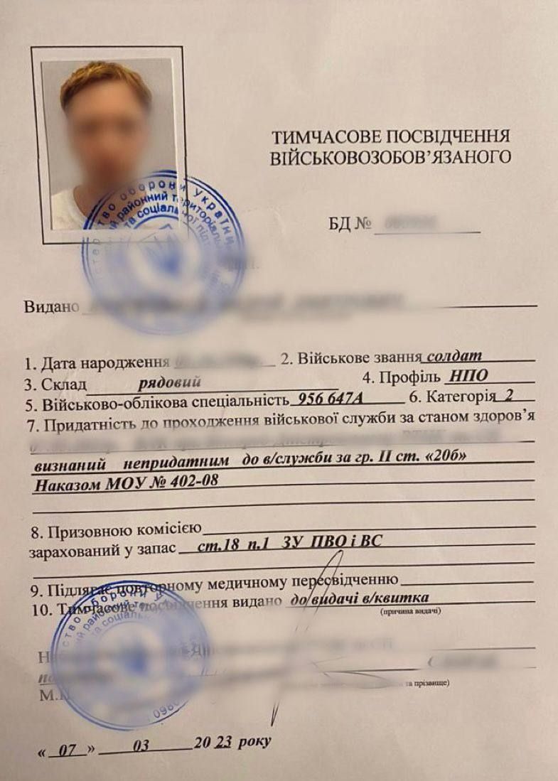 На фото, наданих ОГП, видно, що довідки містять слова "непридатний до військової служби за станом здоров'я".