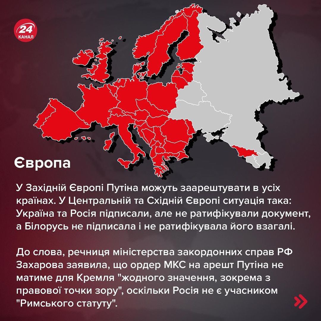 На території яких держав можуть заарештувати Путіна / інфографіка 24 Каналу