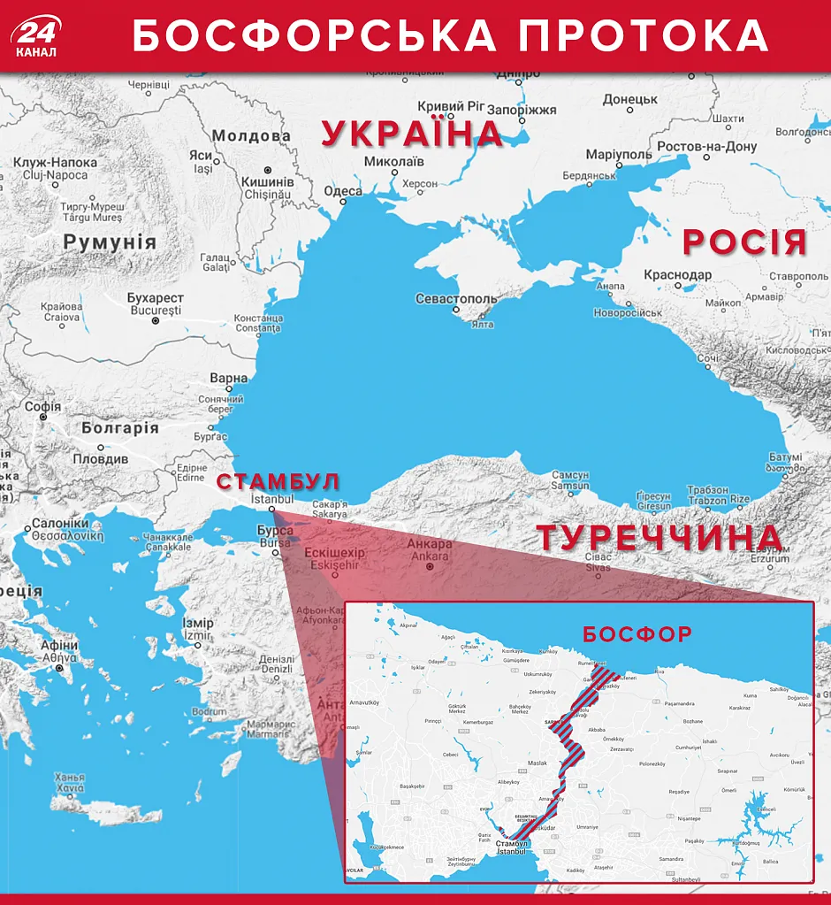 Україна попросить Туреччину перекрити Босфор для Росії: карта