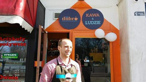 Міні-кав’ярня Dobro&Dobro. Espresso bar киянина Олега Ярового розташована біля Посольства України у Варшаві.