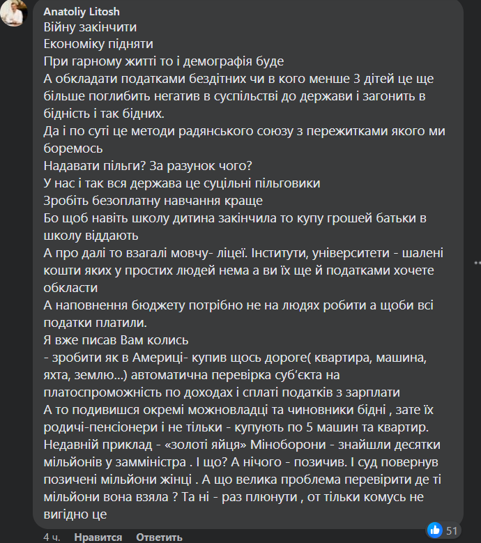 Нещодавно зареєстрований законопроєкт викликав значний резонанс та обурення серед користувачів соціальних мереж. Багато громадян висловлюють негативну реакцію на ініціативу, вважаючи її несправедливою.