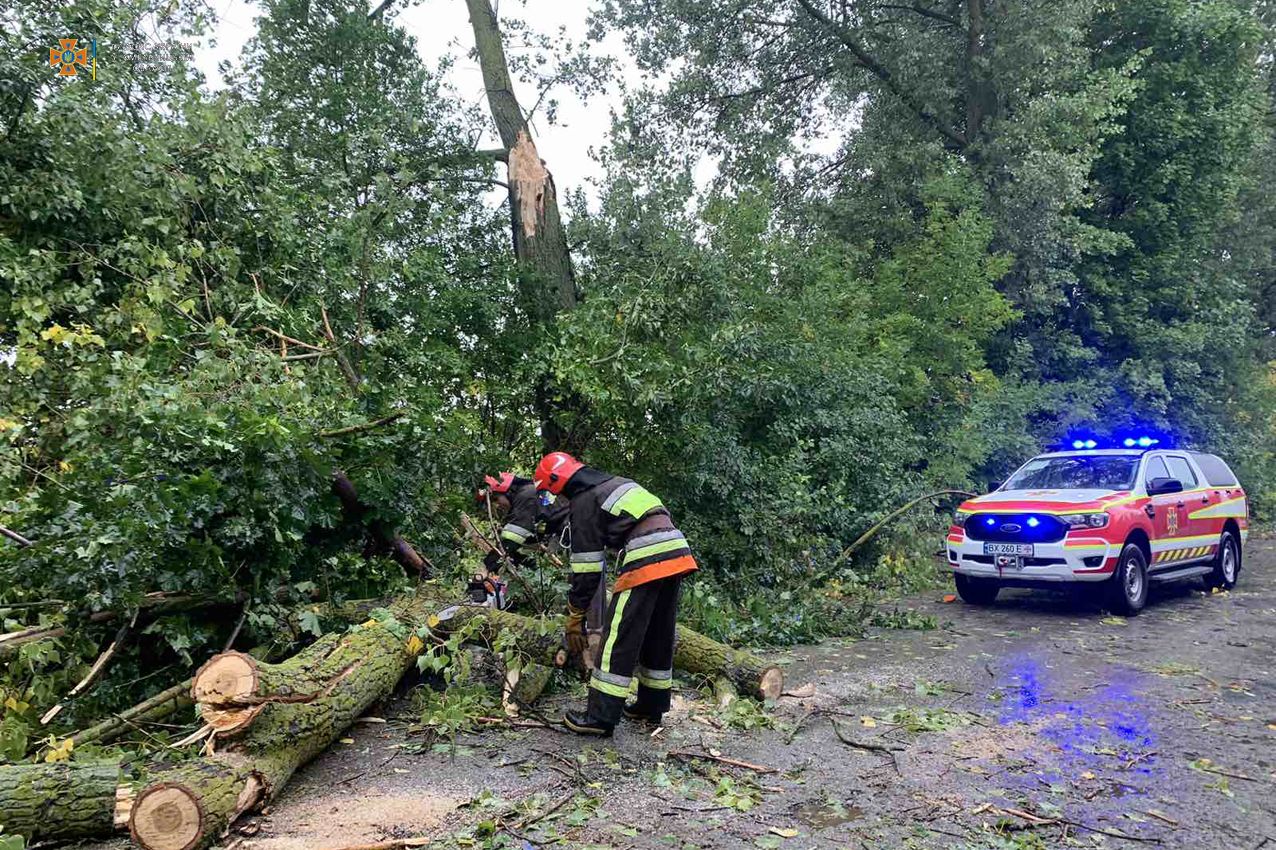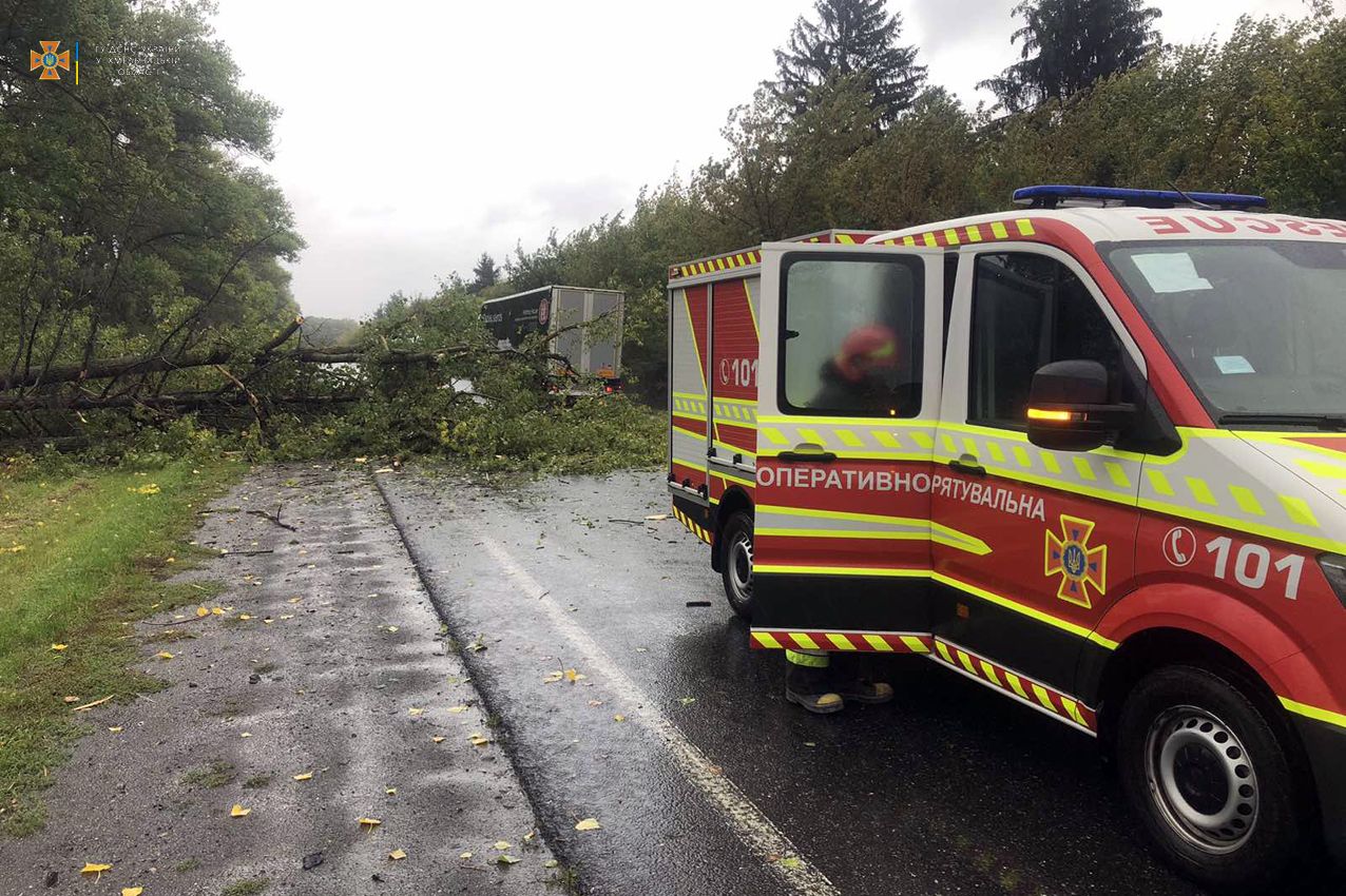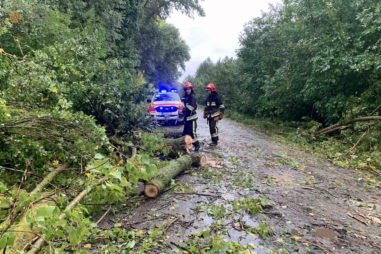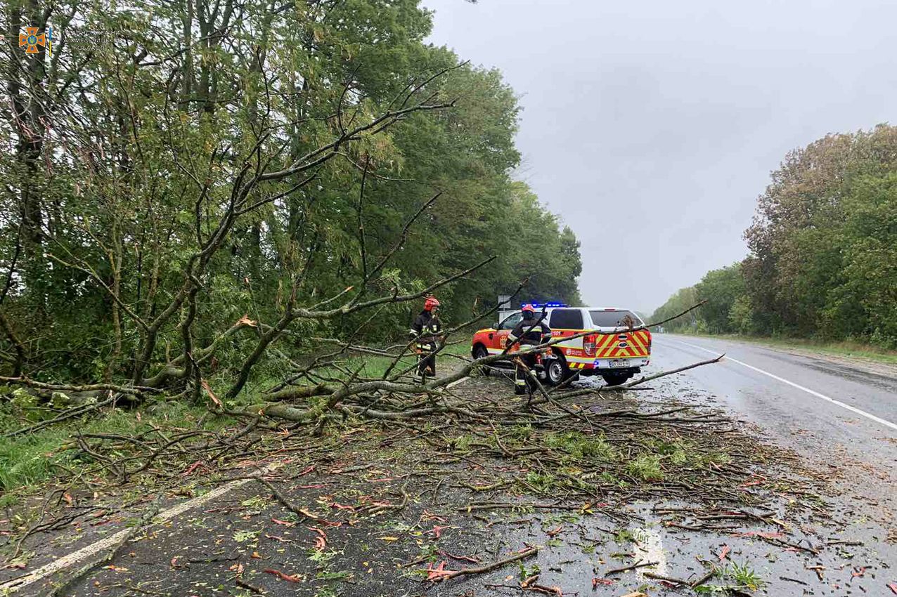 Внаслідок погіршених погодних умов було повалено дерева, які падали на проїжджу частину дороги, тротуари, обривали електролінії, а подекуди падали й на автомобілі та домоволодіння,