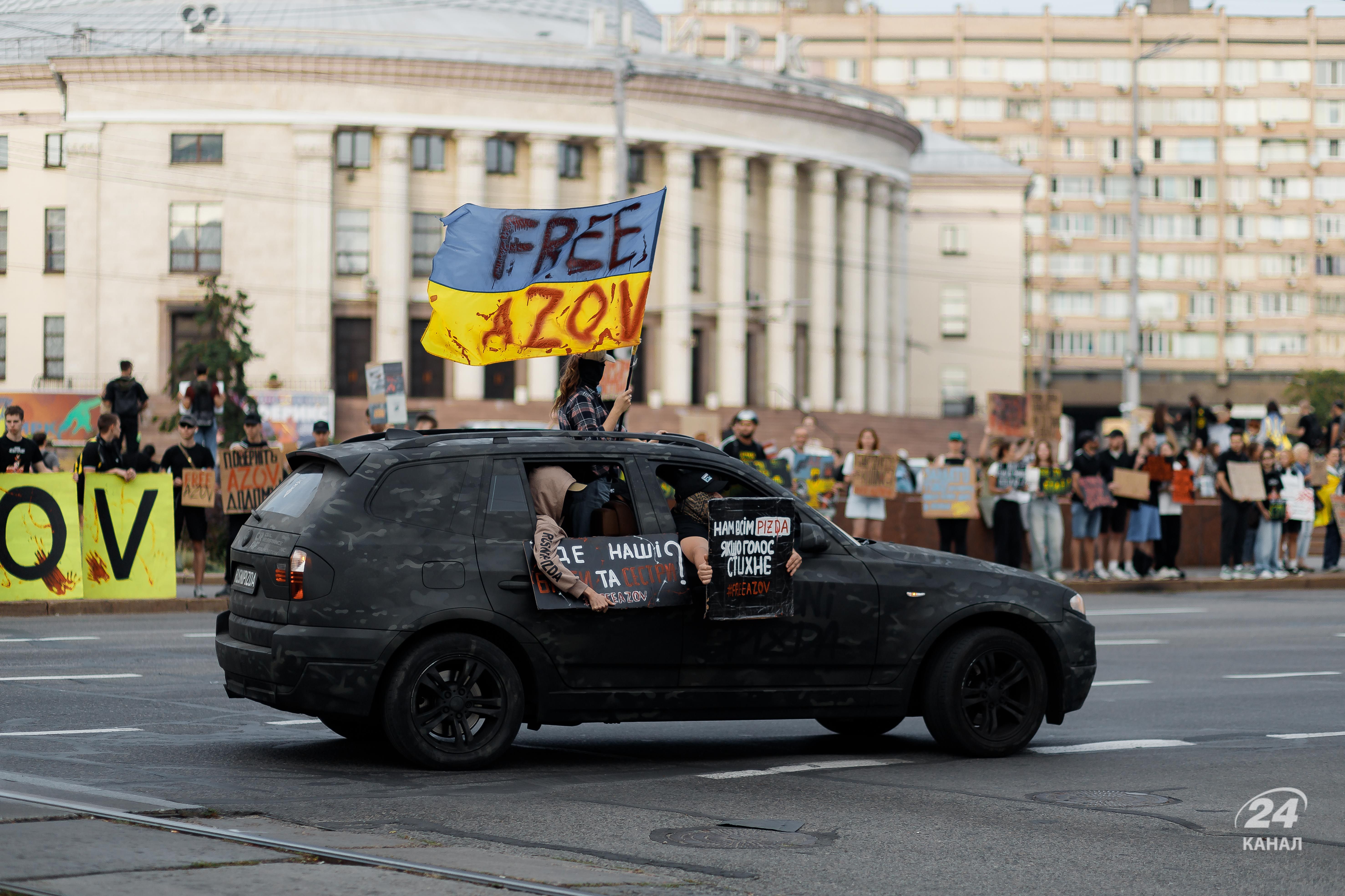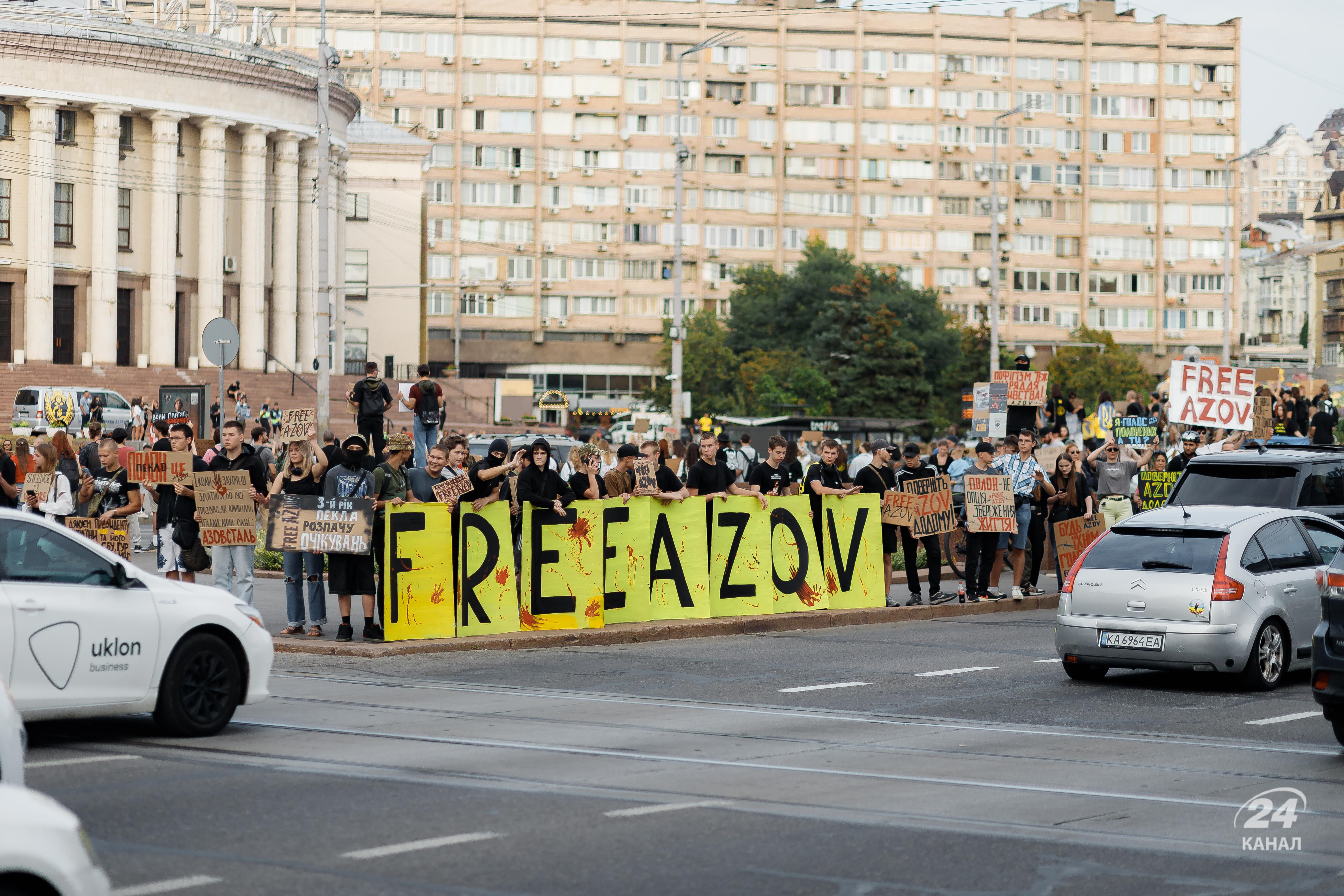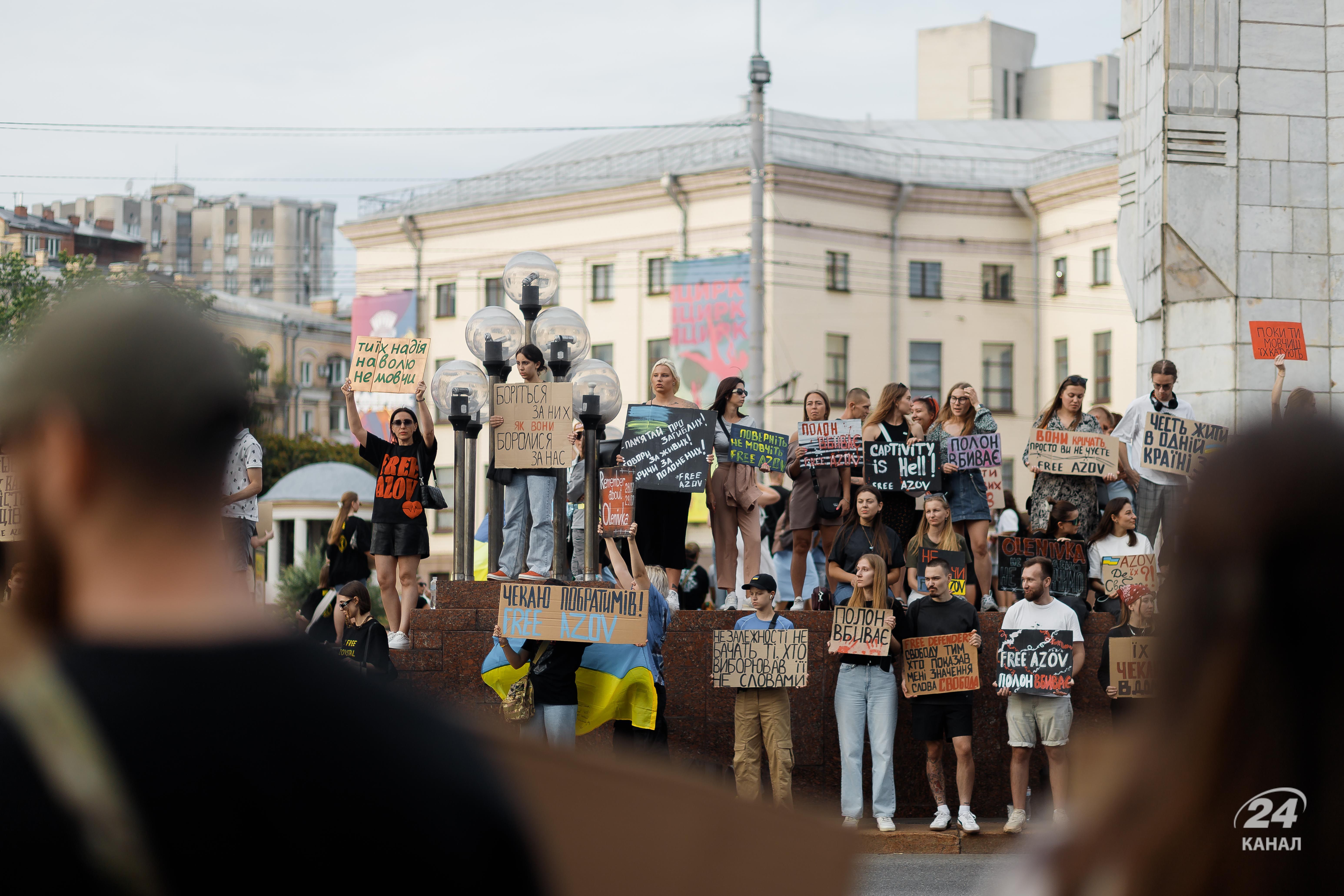 На щонедільній акції 15 вересня у столиці вкотре було багато плакатів зі закликом звільнити бійців "Азову". Дивіться у цьому матеріалі 24 Каналу фоторепортаж з місця події.
