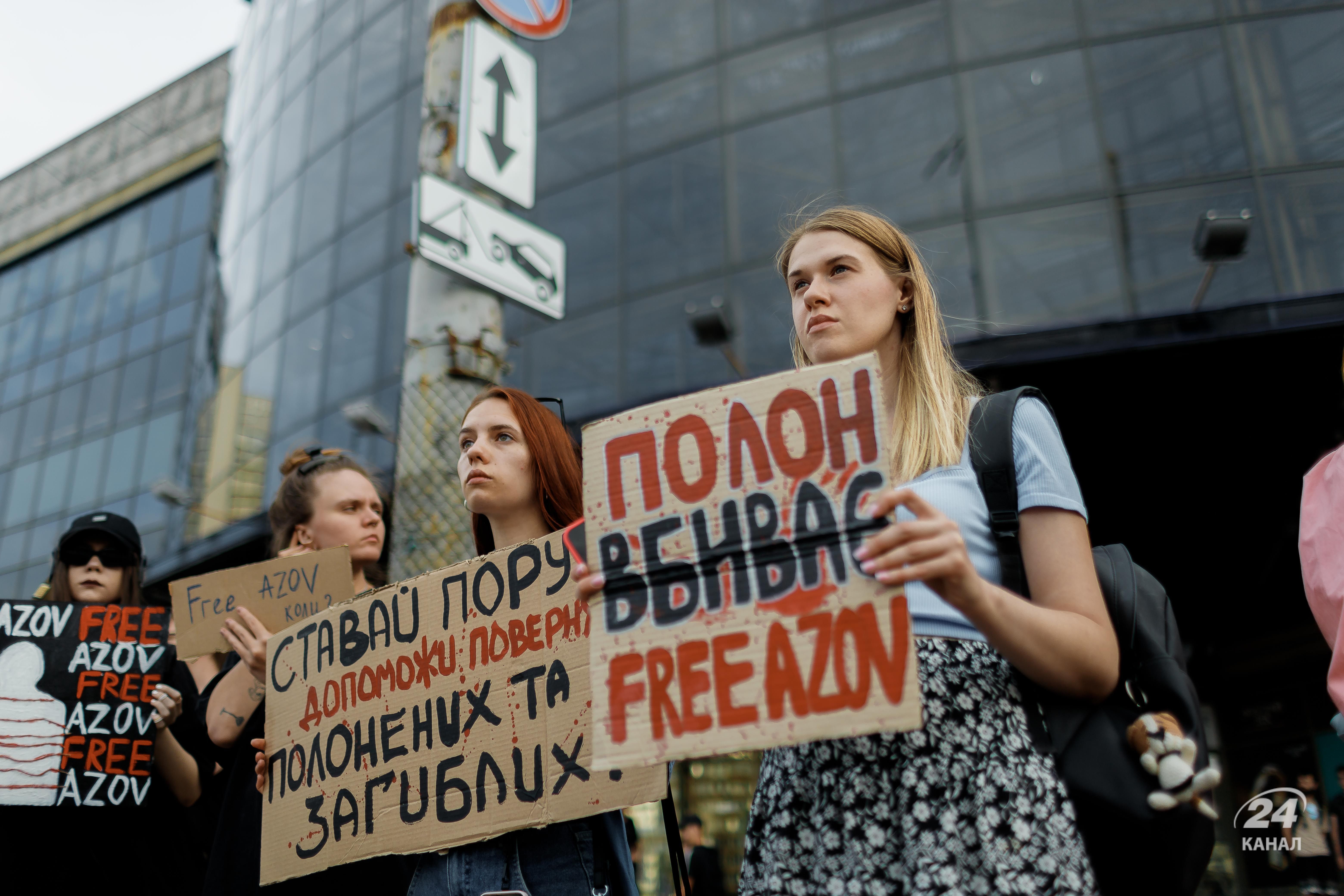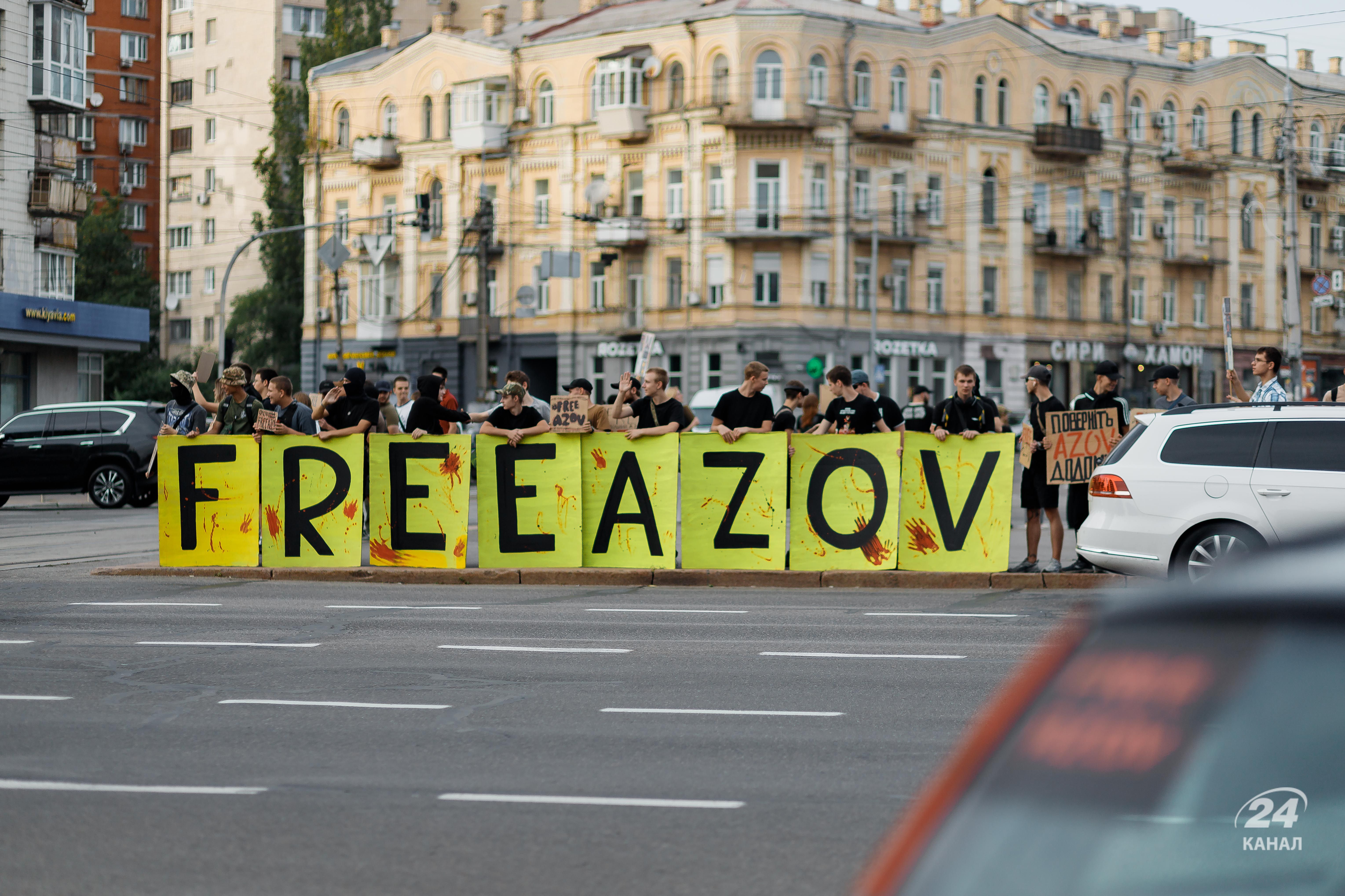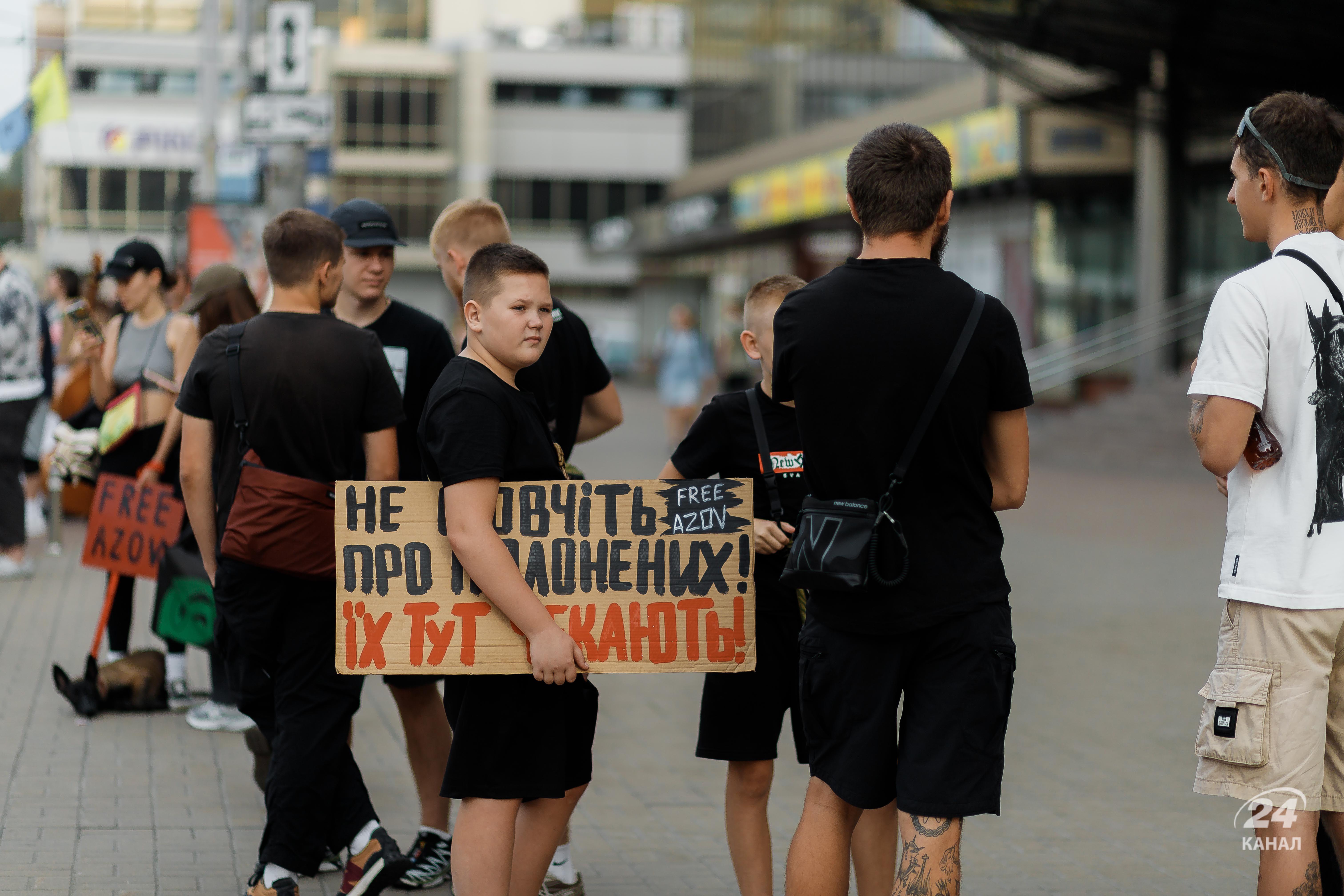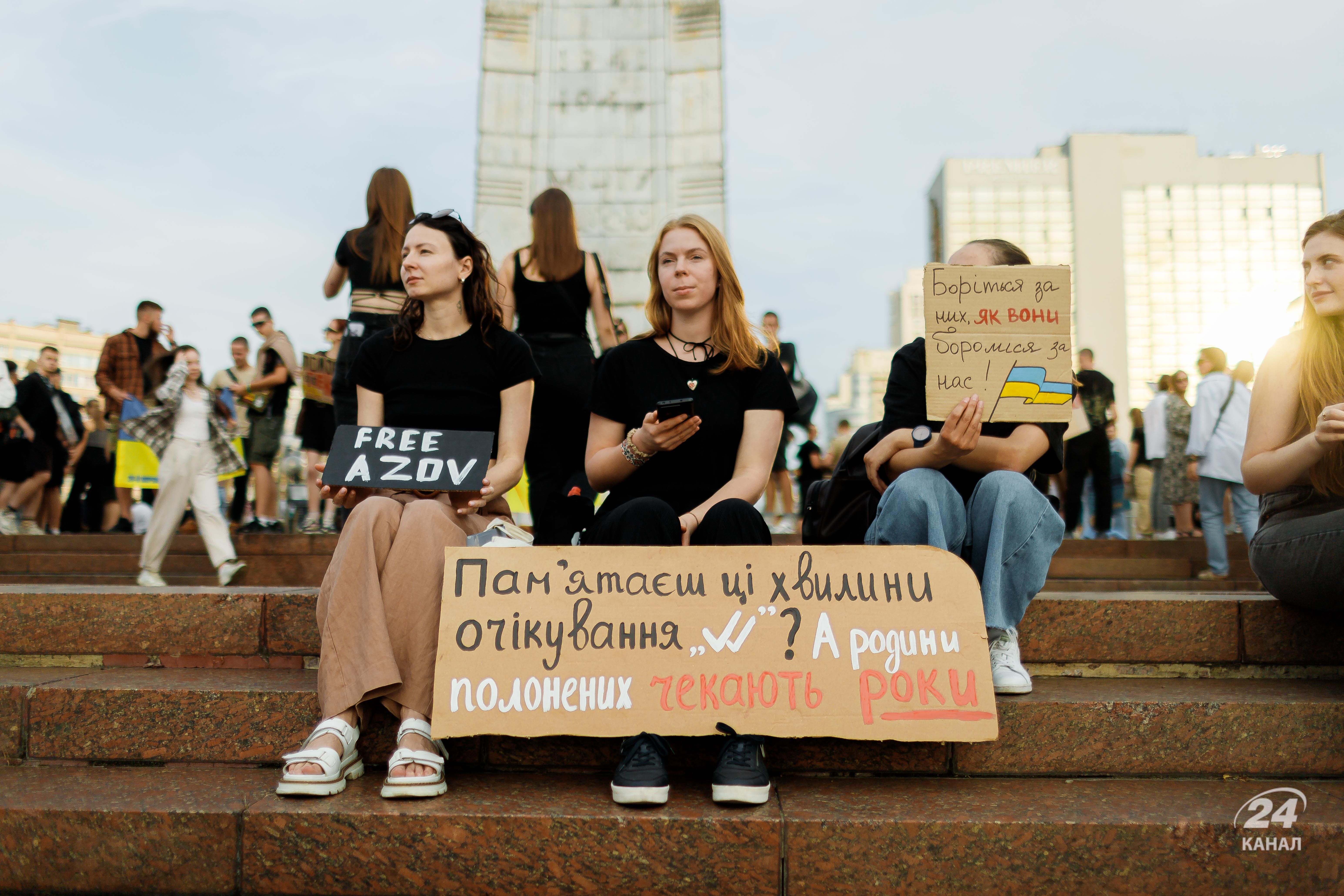 На щонедільній акції 15 вересня у столиці вкотре було багато плакатів зі закликом звільнити бійців "Азову". Дивіться у цьому матеріалі 24 Каналу фоторепортаж з місця події.