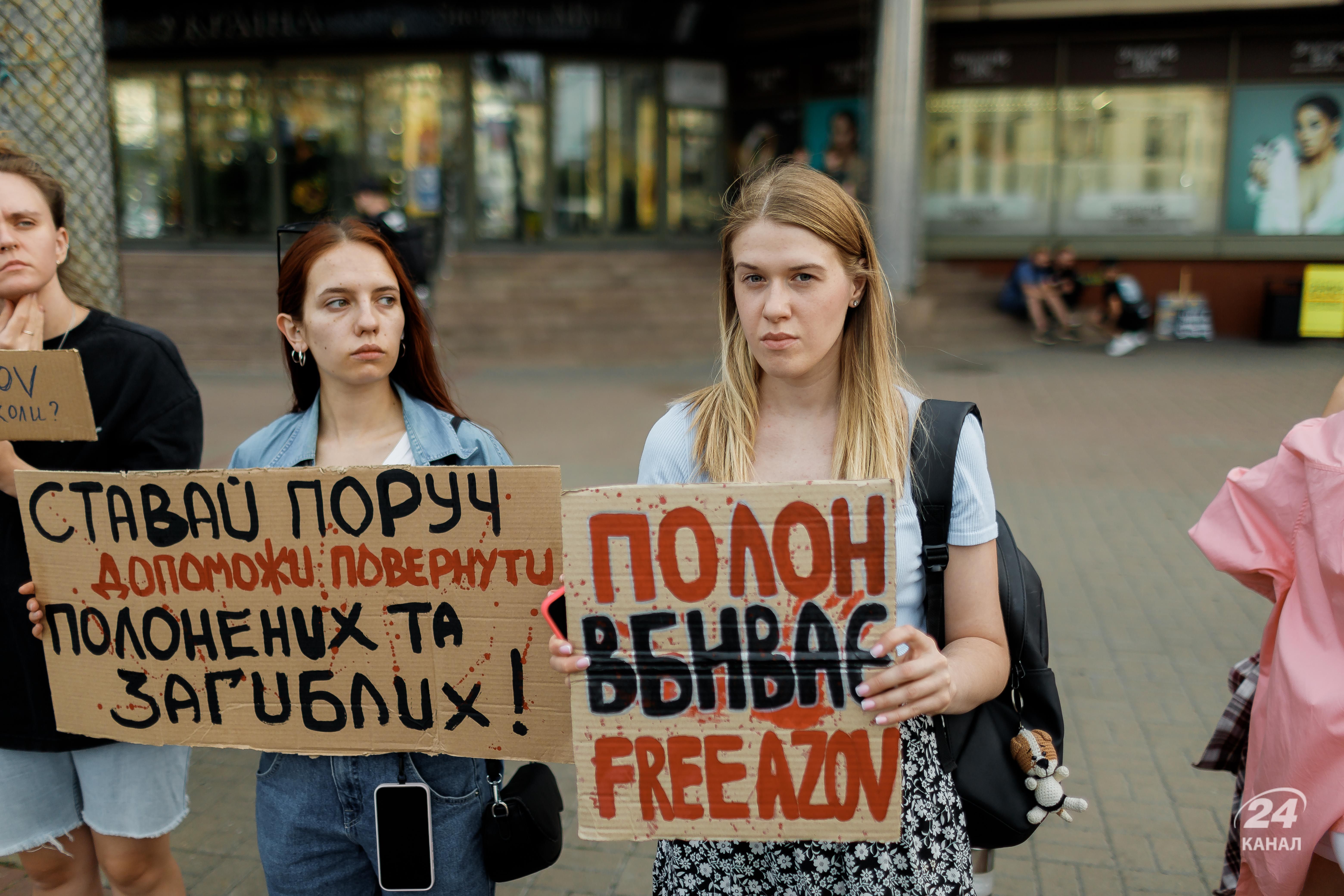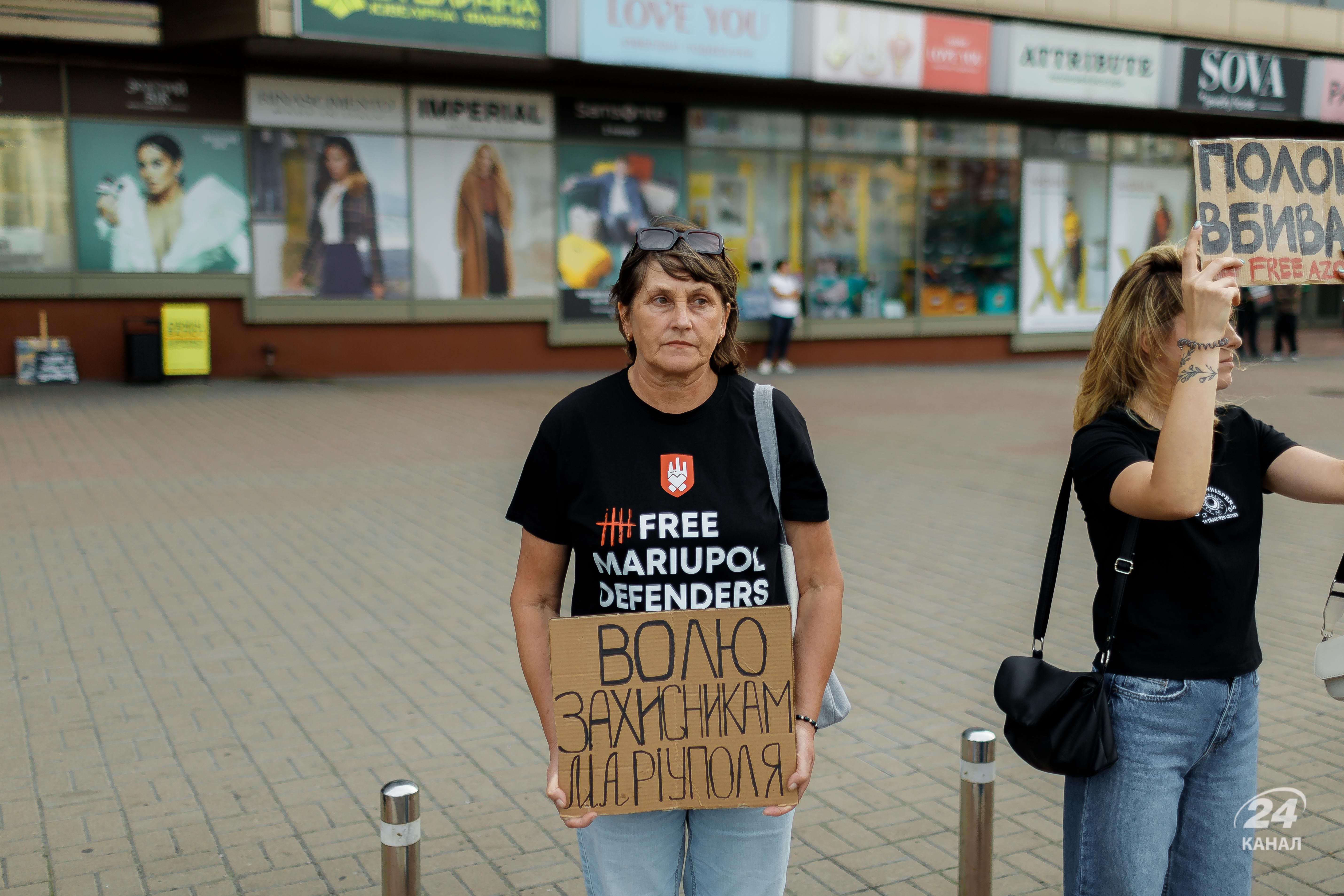 На інших плакатах, з якими стояли люди, були різні слова та формулювання. Однак загалом вони були про те, аби стати голосом полонених та врешті-решт досягнути того, аби бійців повернули додому.
