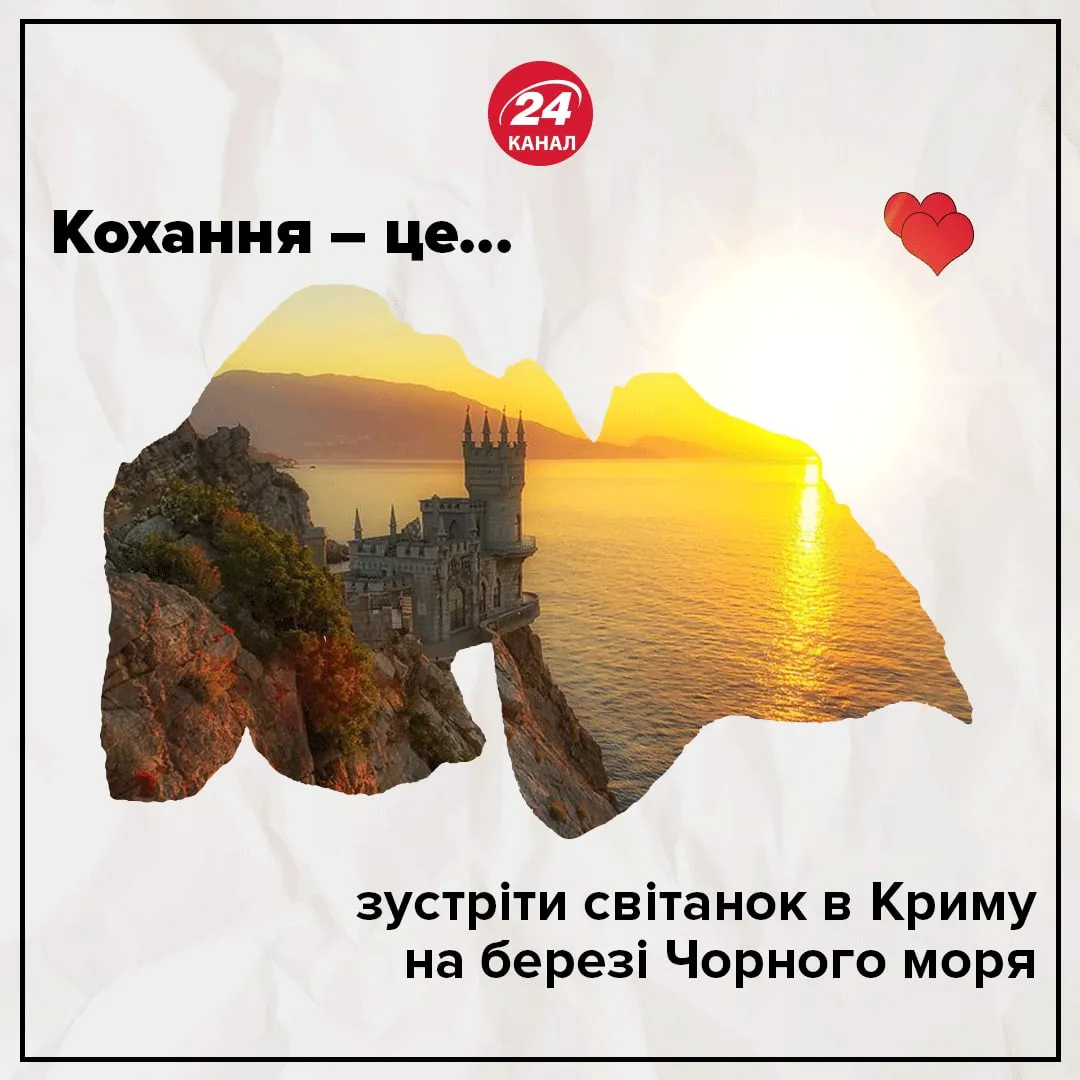 Ну і нарешті, кохання – це спільні мрії. І ось тут справжня "ітс е метч". Бо мрії в українців і дійсно часто співпадають. Ніхто не відмовиться від світанку в Криму на березі Чорного моря. Така романтика не залишить спокійним серце кожного українця. І ця мрія уже скоро стане реальністю завдяки зусиллям наших захисників.