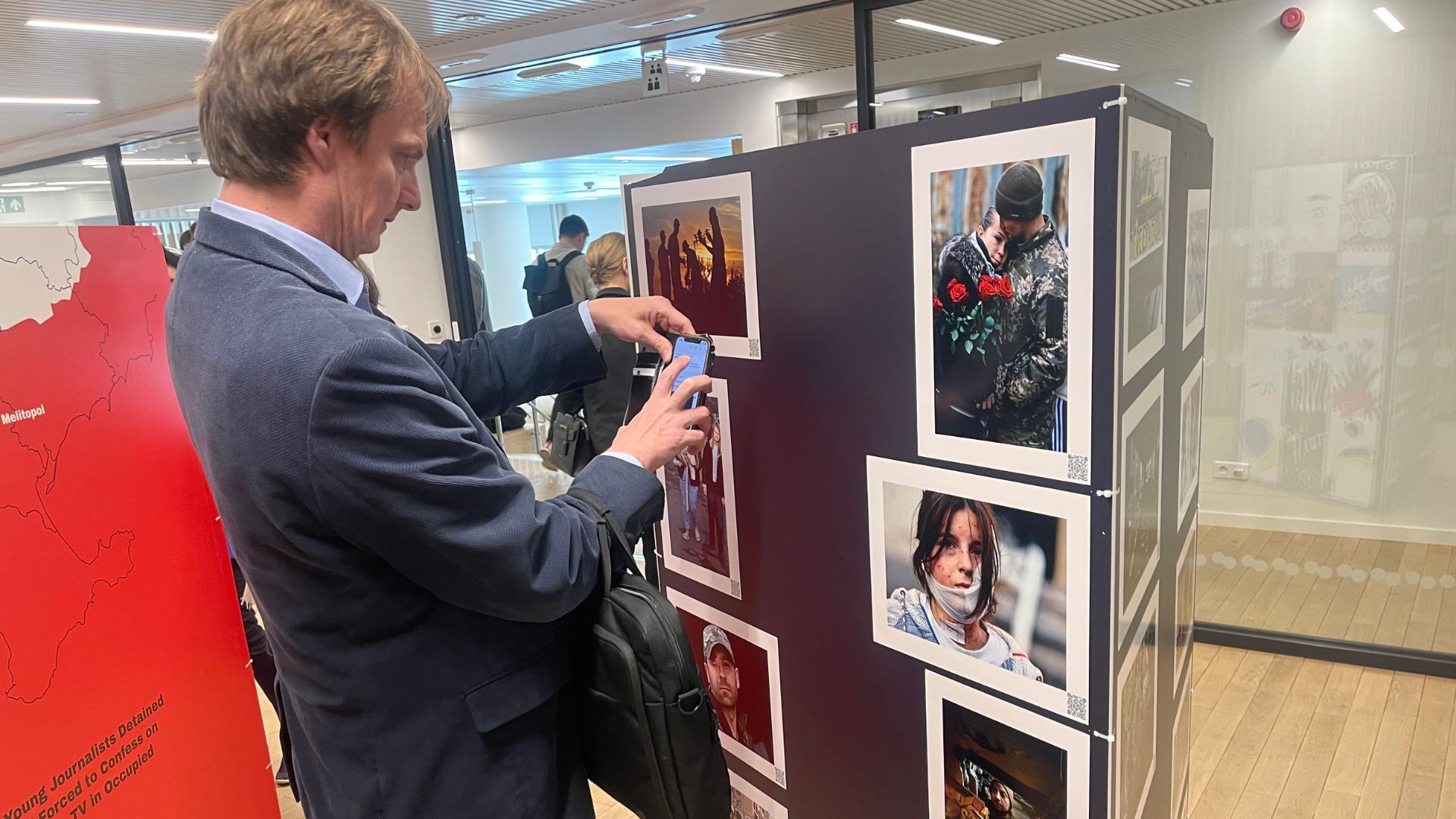 У Брюсселі відкрили фотовиставку про українських журналістів у російському полоні / Фото із заходу