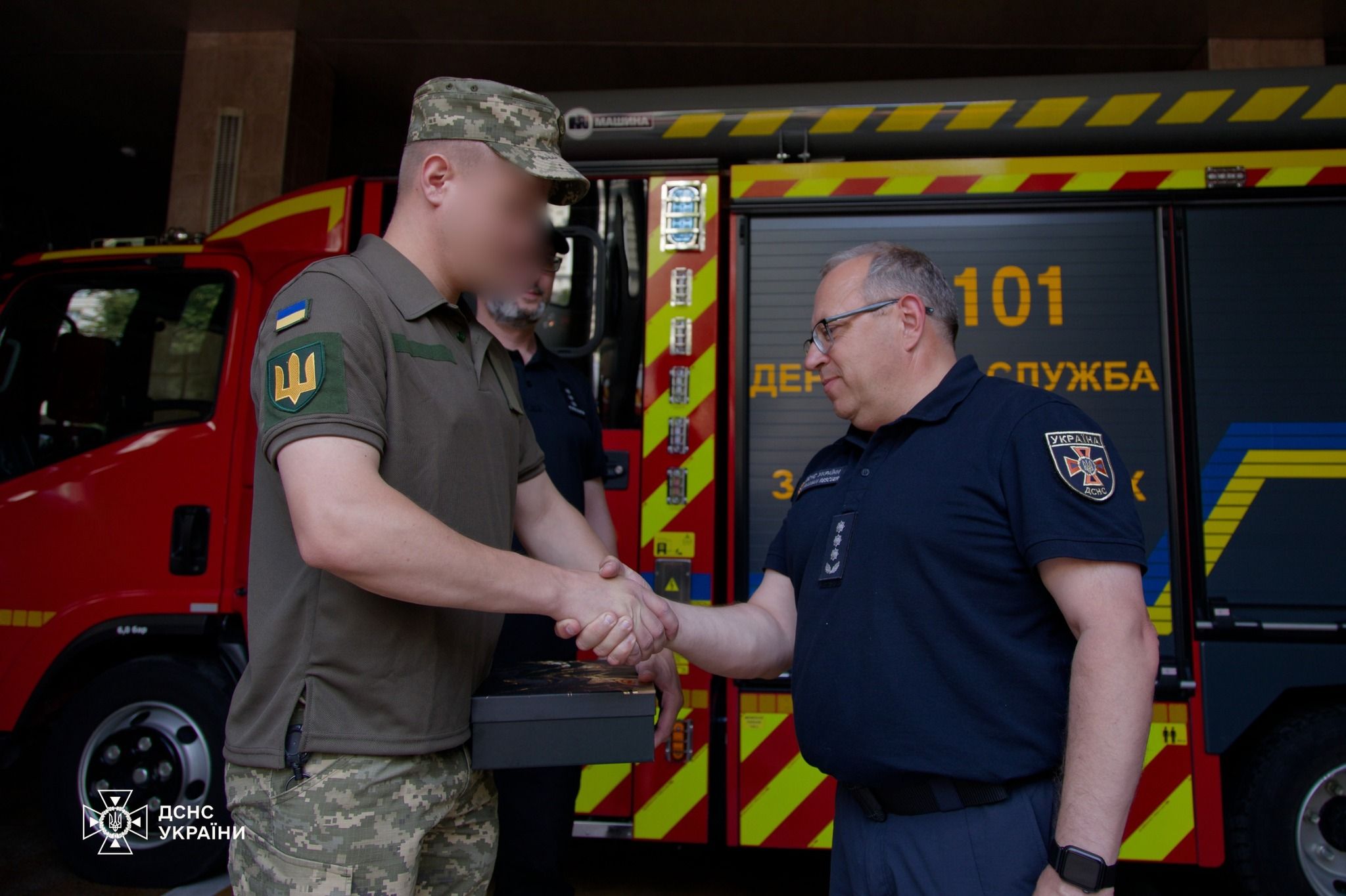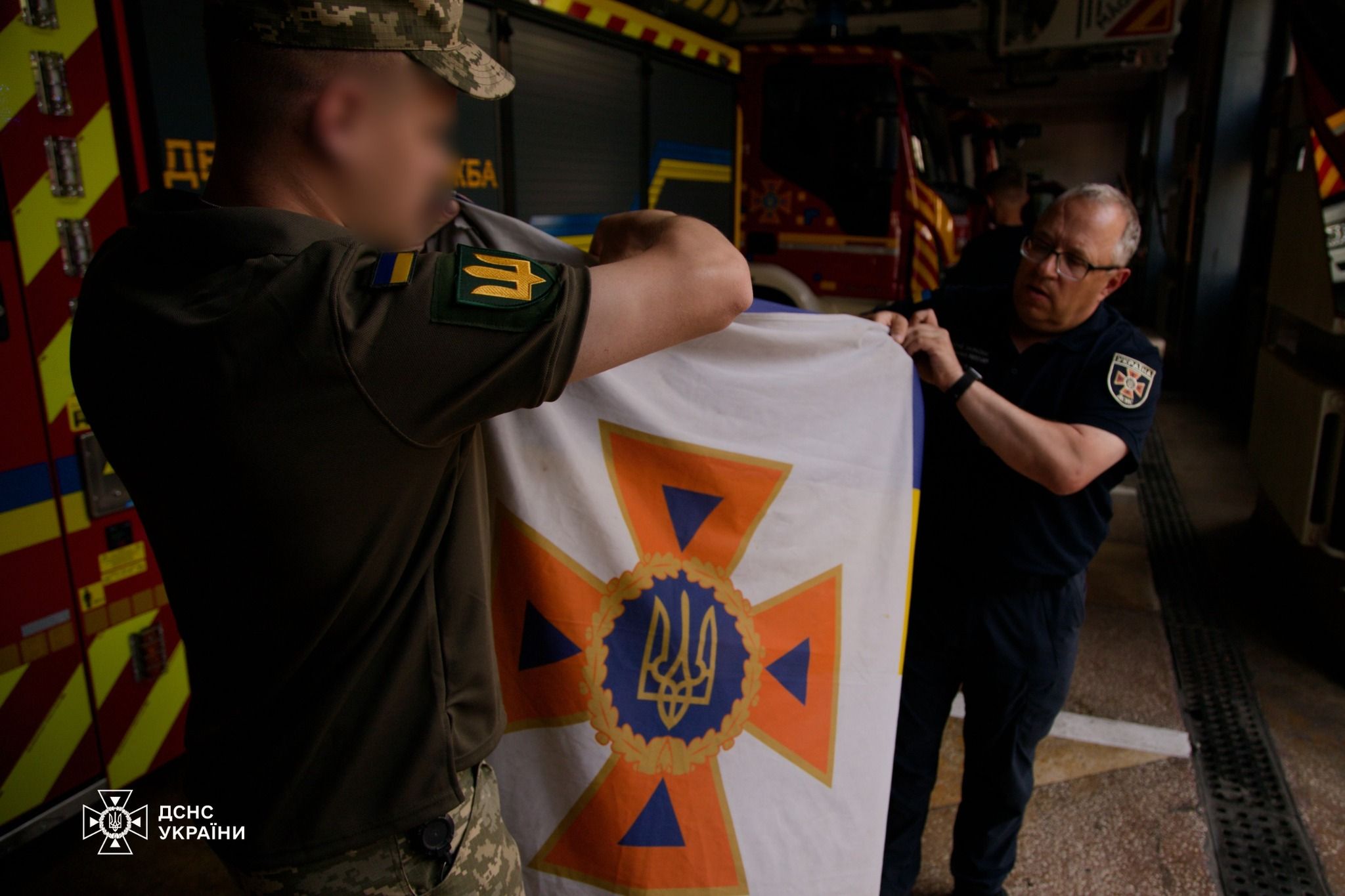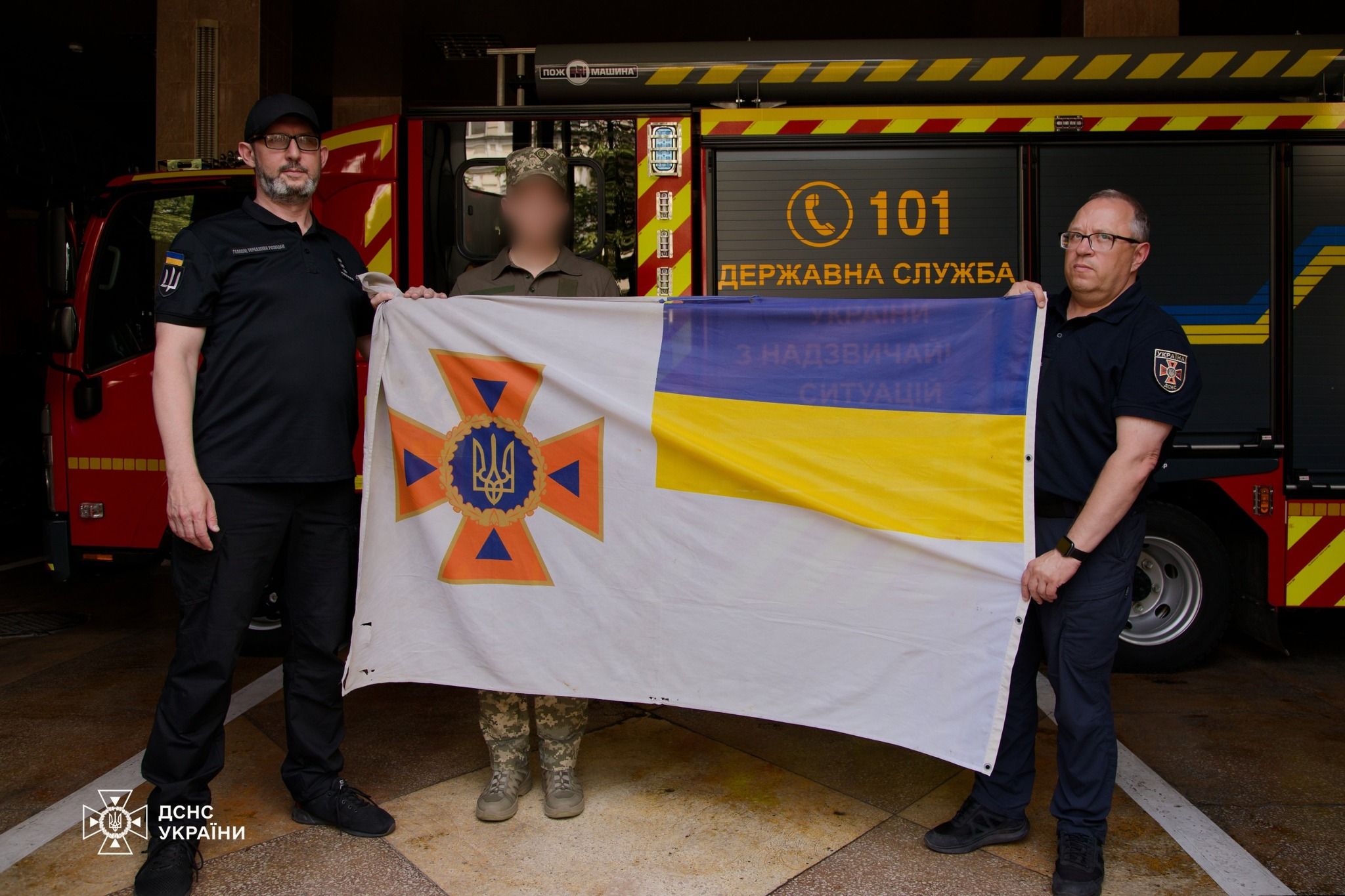 Представники ГУР урочисто передали рятувальникам державний прапор ДСНС, який декілька років пролежав у схованці на окупованій, а згодом звільненій Донецькій області.
