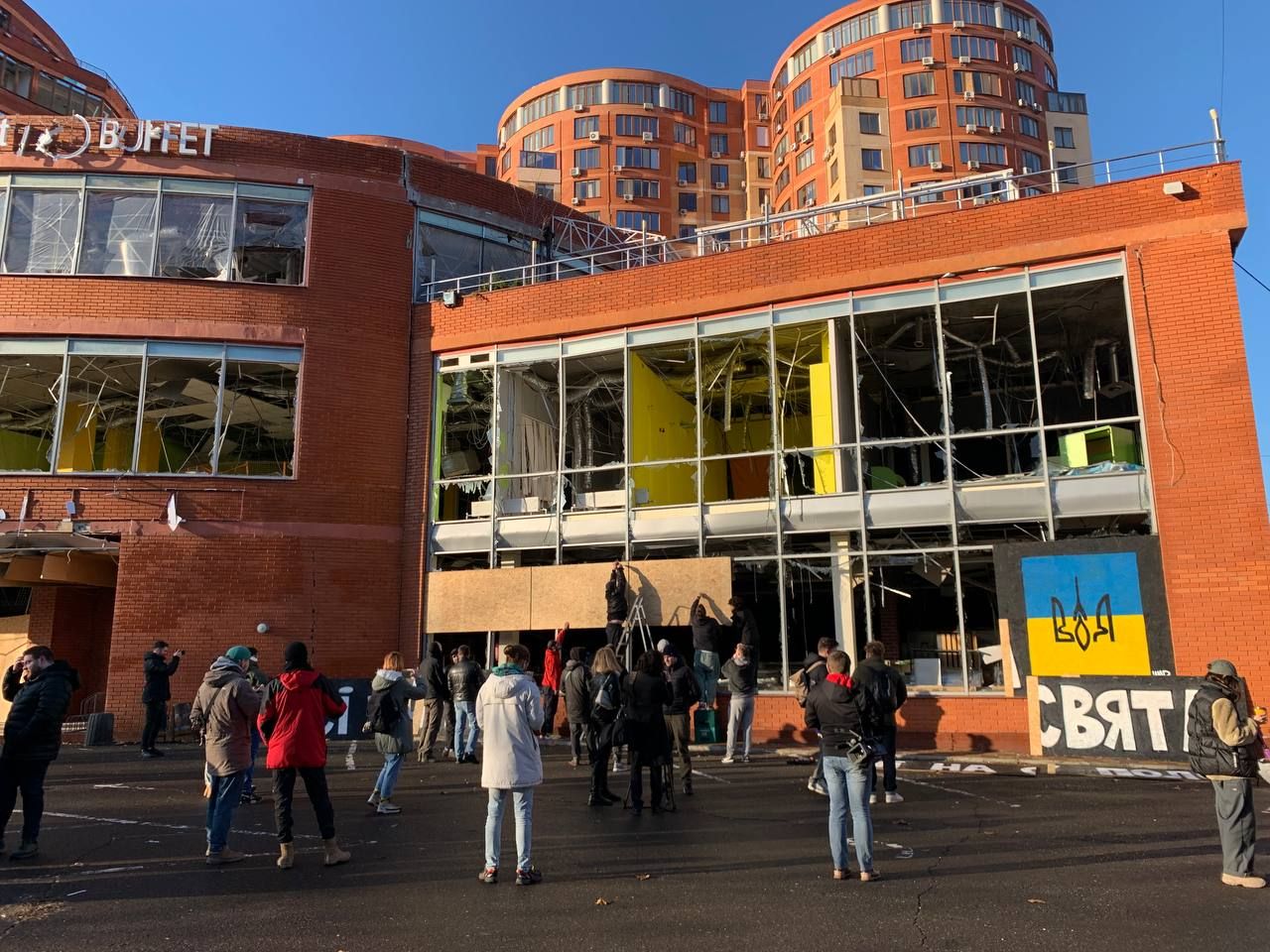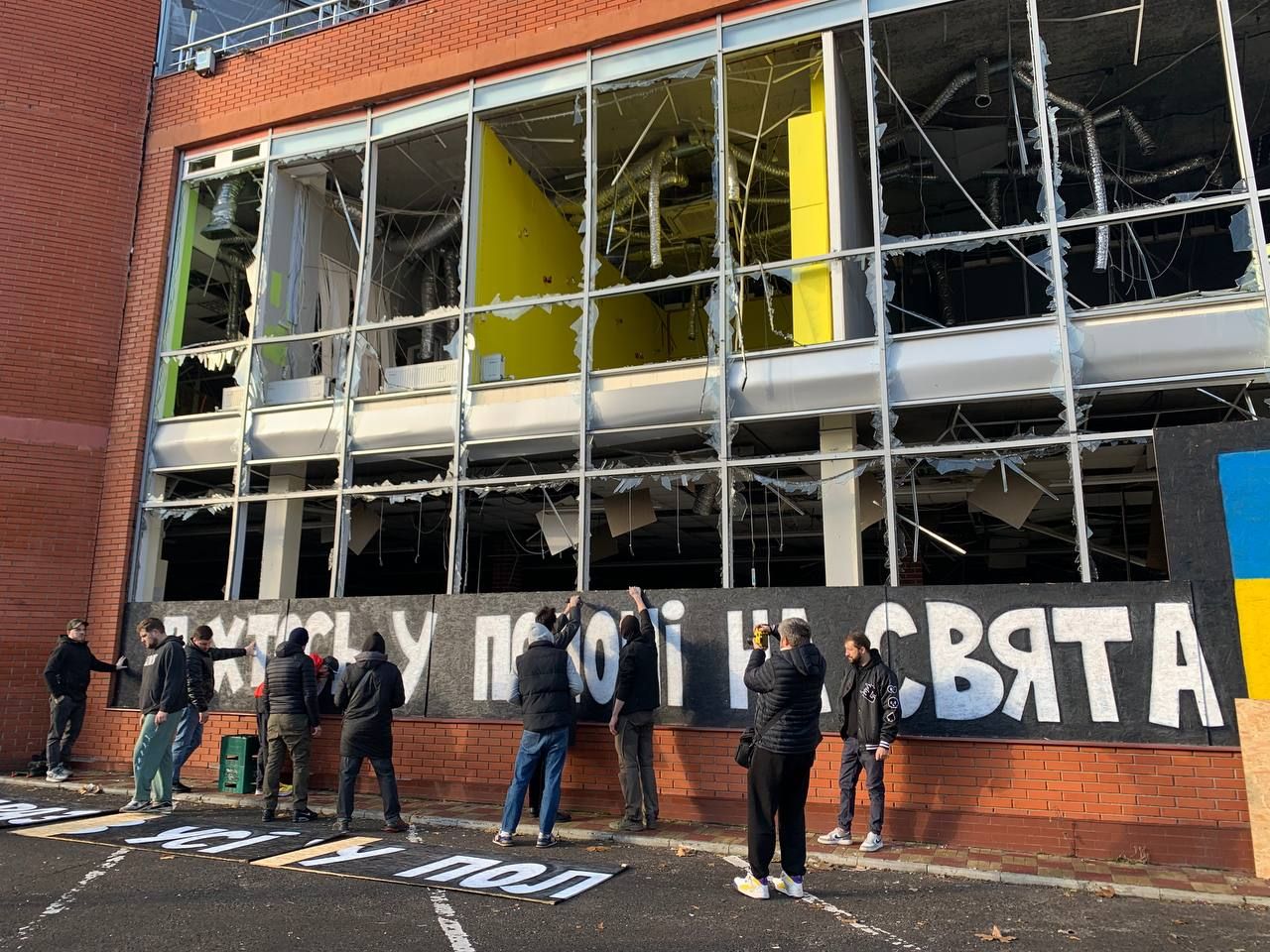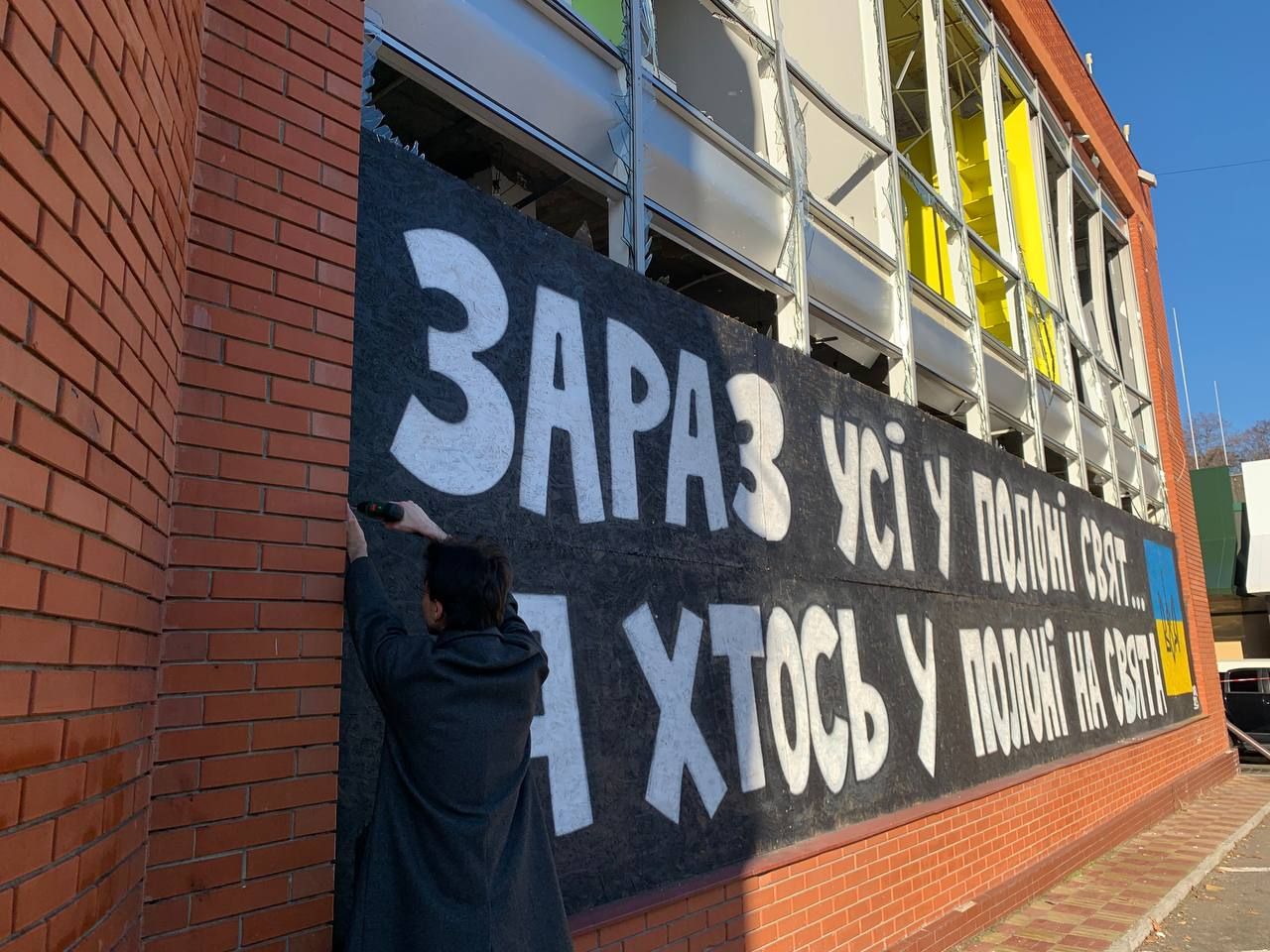 Місце обрали не випадково. Ця будівля була зруйнована внаслідок ракетного обстрілу 14 червня, зауважив співавтор малюнка Дмитро.