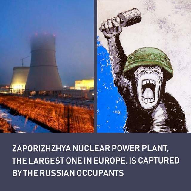 Путінський режим несе загрозу не тільки Україні, але й цілому світу. Через це українців просять поширювати серед іноземців правдиві картинки про те, що російська армія атакувала ЗАЕС.
