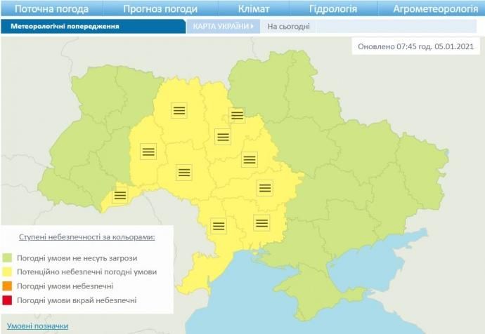 Синоптики оцінюють рівень небезпеки як жовтий. Через туман попереджають про можливе ускладнення руху на дорогах.