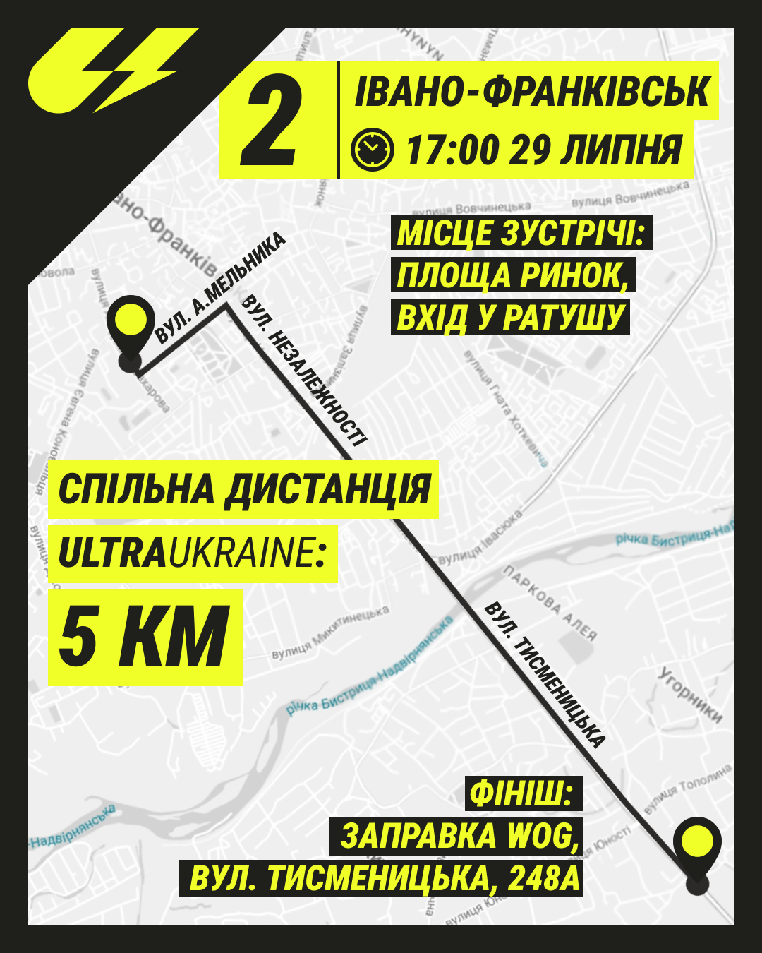 Крім того, у великих містах забігу буде організована точка зустрічі з бігунами й всі охочі, за довільний донат на основний збір – можуть пробігти довільну дистанцію з військовими.