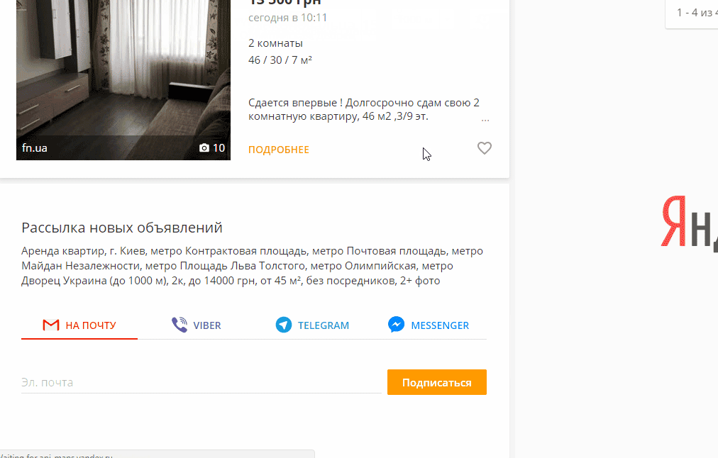 Тепер можна швидко отримувати відомості про публікації нових пропозицій у розділі, що вас цікавить, підписавшись на розсилку даних. При цьому ви отримуєте повідомлення тільки про оновлення того переліку оголошень, які відповідають певним параметрам, що обрані раніше.