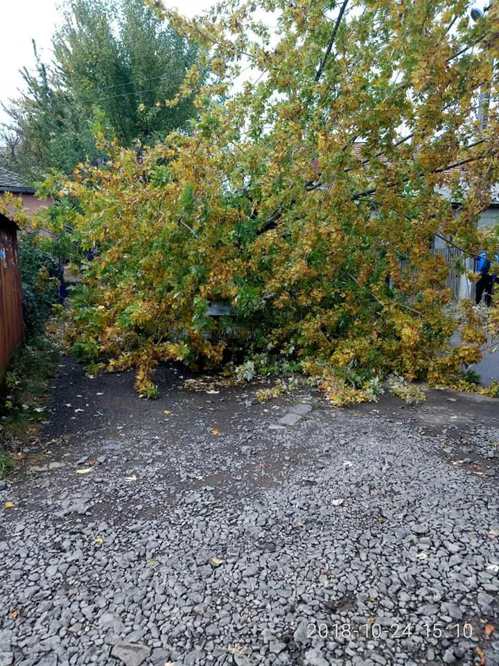 "В Ужгороді сьогодні, 24 жовтня, через сильні пориви вітру в кількох районах міста зламалися дерева", – йдеться у повідомленні.