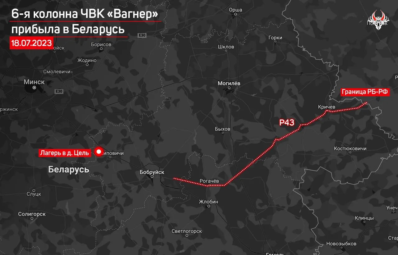 Було зафіксовано, що колона під’їжджала до об'їзної Бобруйска, а потім пішла на Осиповичі в напрямку табору вагнерівців.