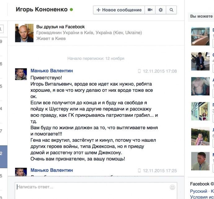Скриншоти, які оприлюднив Денисенко у грудні 2015 року