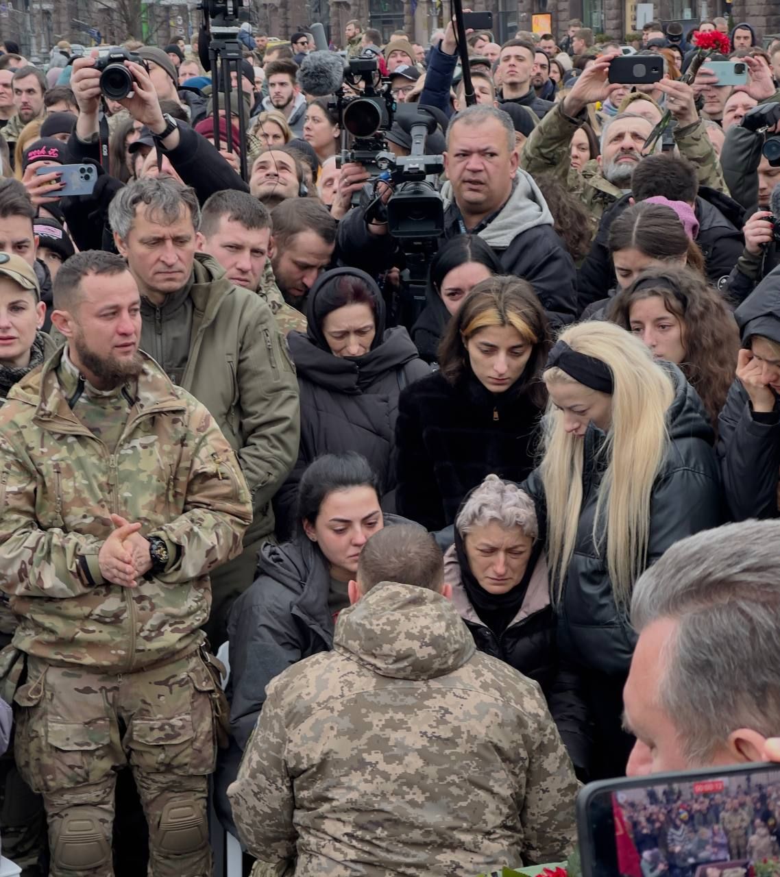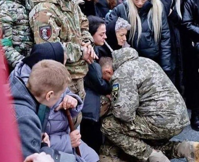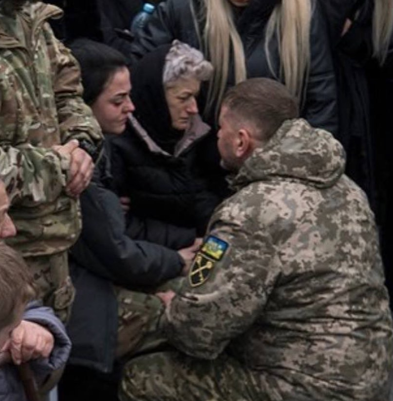 Під час прощання з захисником Валерій Залужний встав на коліна перед коханою та матір'ю Дмитра Коцюбайла. Таким чином Головнокомандувач виразив свої найщиріші співчуття.