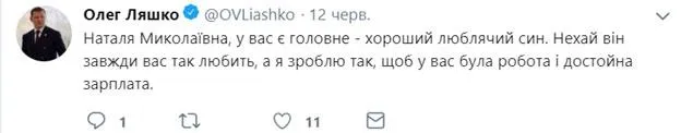 Ще того твіттерника Олега Ляшка важко порівняти з іншими, адже його експресивність є і в дописах нардепа. Цікаво, що в депутата відсоток постів, що стосується особистого життя, набагато вищий, ніж в інших політиків. Олег Ляшко часто хизується своїми домашніми улюбленцями, розповідає про те, як любить робити вареники з вишнями, а ще він дуже-дуже любить свою маму. Між усім цим Олег Ляшко, до речі, встигає писати і про свою віру в українців. Хоч Ляшко і працював журналістом, та, здається, правила не усі вже пам’ятає: кому ставить перед фразеологізмами, а звертається в називному відмінку.