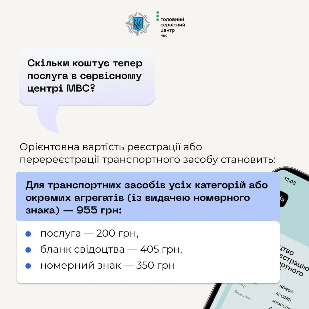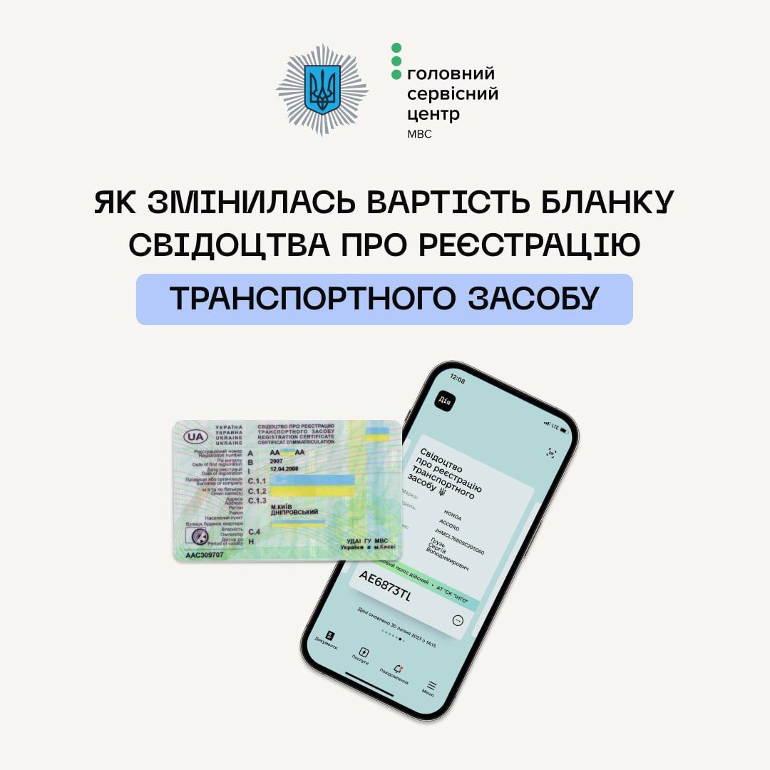 Раніше орієнтовна вартість бланкової продукції становила 312 гривень, а тепер буде 405. Подорожчання стосується лише випадків виготовлення свідоцтва про реєстрацію на фізичному бланку, тобто пластикової картки. Своєю чергою, вартість отримання е-свідоцтва про реєстрацію транспортного засобу не змінилася.