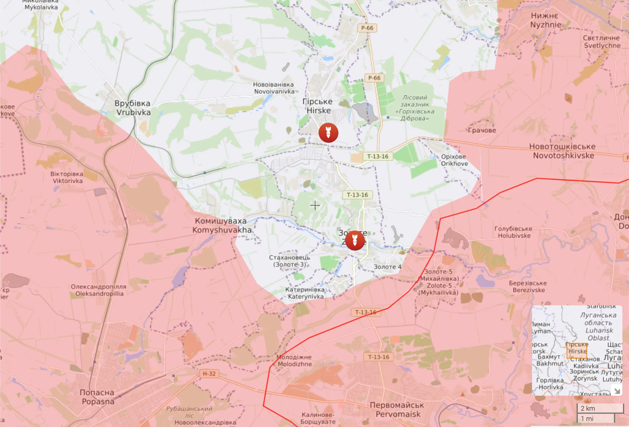 Намагаються російські військові йти штурмом у напрямку Оріхового – Гірського. Там зараз продовжують тривати бойові дії. Натомість на напрямках Оріхове – Золоте та Первомайськ – Золоте нашим захисникам вдалось відбити ворожі атаки.