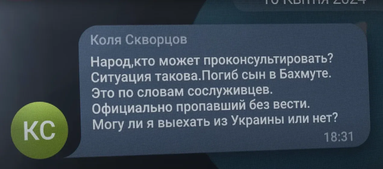 У квітні 2024 році Сцельніков просив консультації щодо того, чи може він виїхати за кордон, якщо його син безвісти зник у Бахмуті.