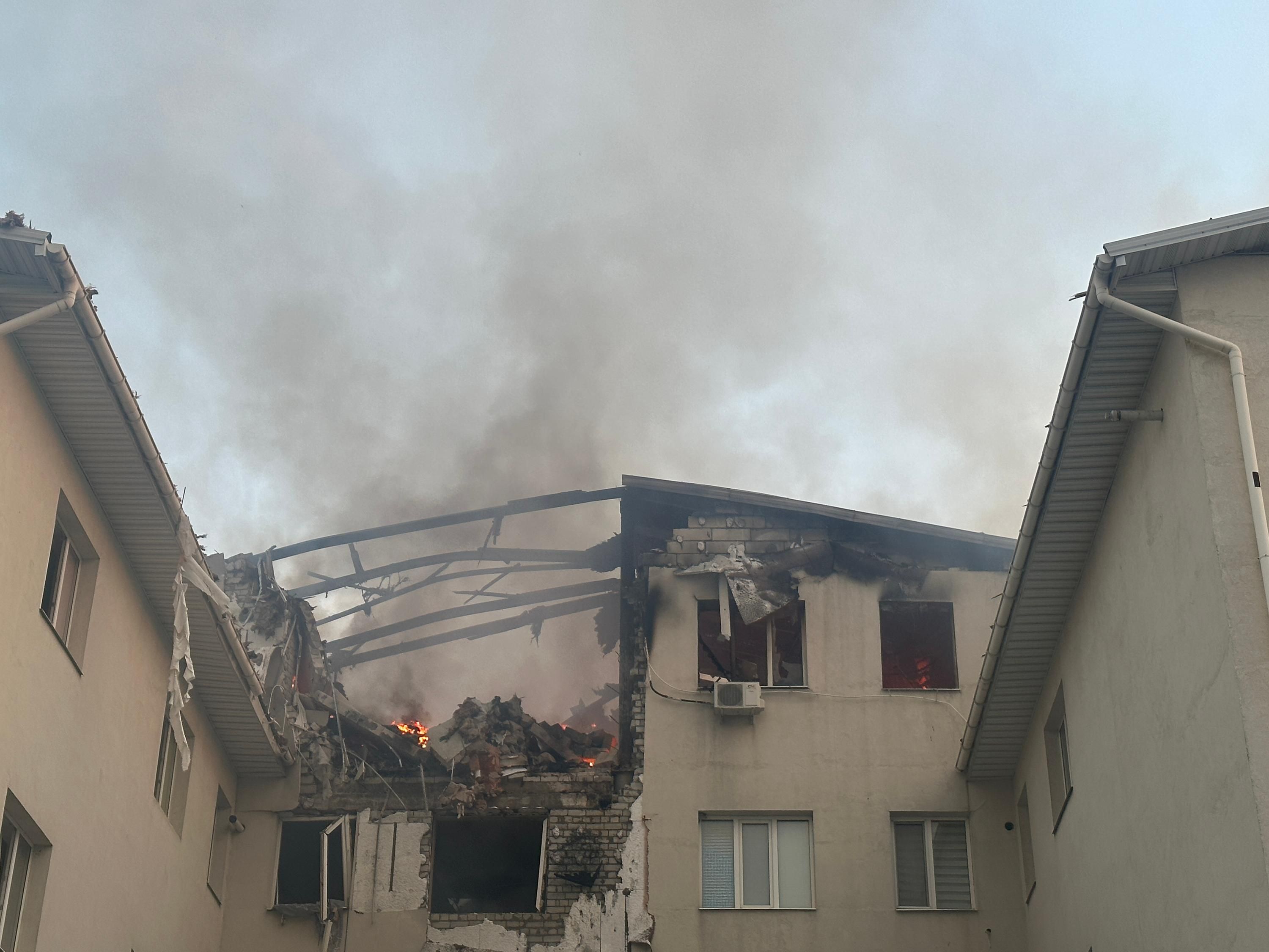 - За словами мера Харкова Ігоря Терехова, удар по житловому будинку був цілеспрямований, адже п'ять "Шахедів" "заходили на нього з різних боків".