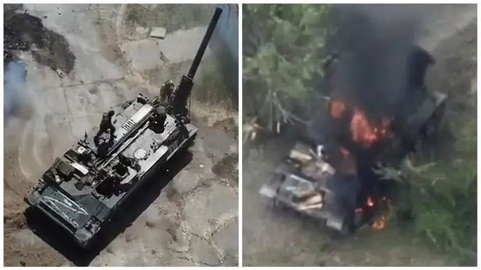 Російська САУ до та після удару / Фото з фейсбуку СтратКом ЗСУ