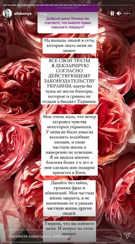 У мене не було наміру викликати подібні емоції, і своє приватне життя я навмисно не висвітлюю. Я не бачила багатьох близьких більше 2 років, і вони зробили мені подарунок, прилетівши до Києва,