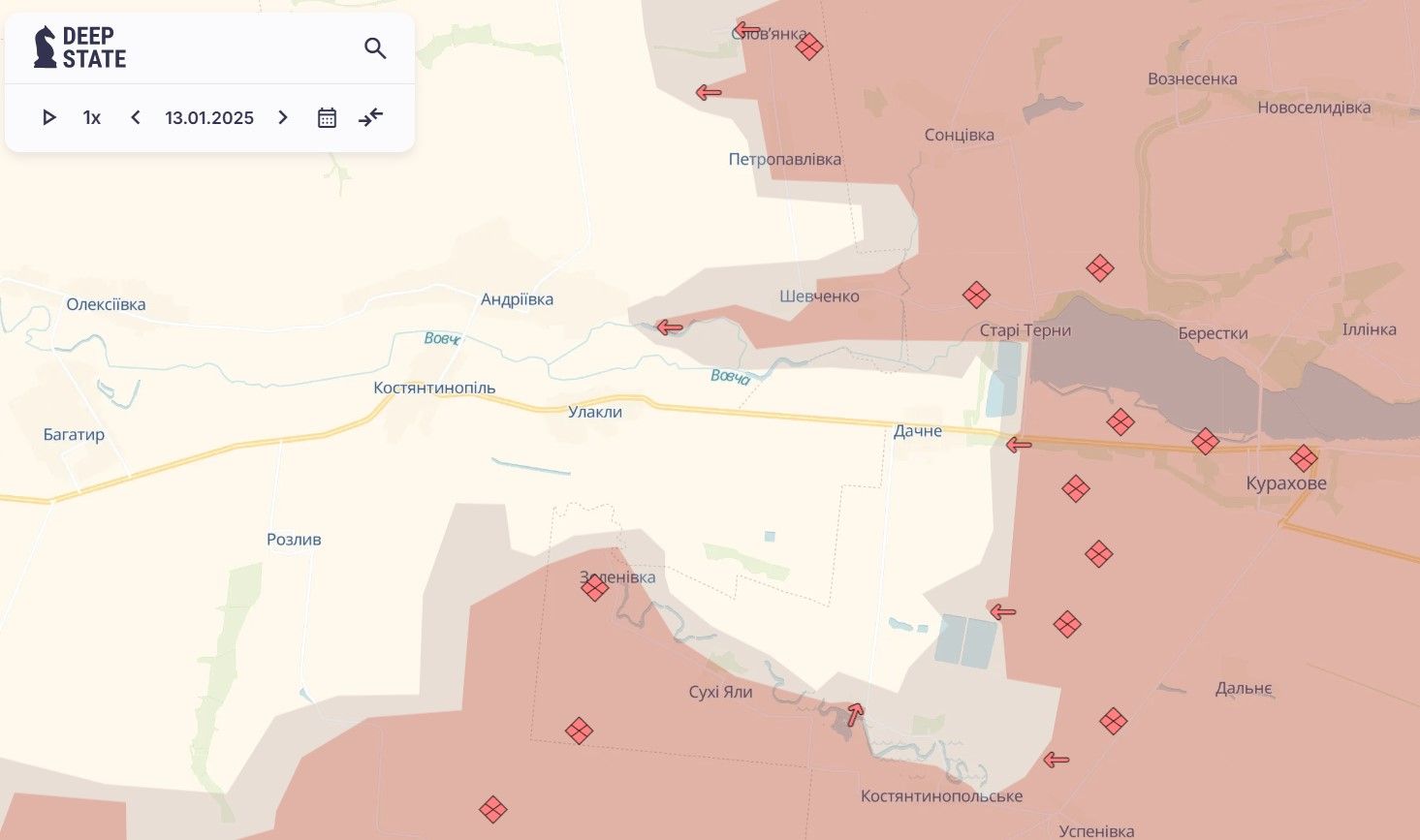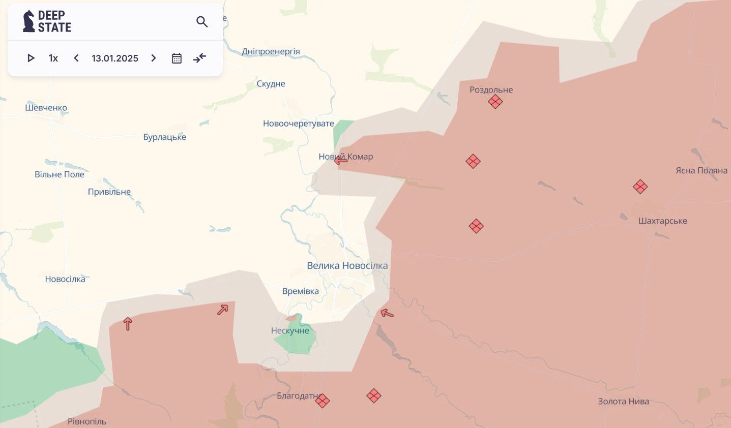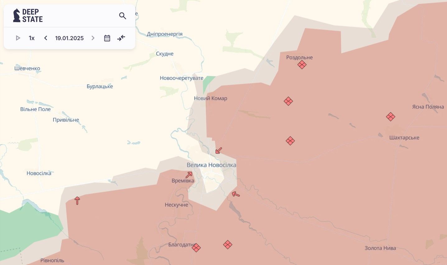 Ситуація в районі Великої Новосілки / Карта DeepStateMAP
