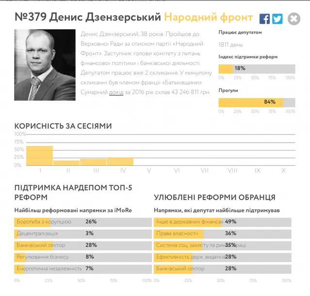 Вони спробували розрахувати коефіцієнт корисної дії кожного окремого депутата, виходячи з того, чи голосував він за законопроекти, спрямовані на ухвалення важливих реформ. Таких як боротьба з корупцією, децентралізація, реформа банківського сектору, регулювання бізнесу і реформи, які посилюють енергетичну незалежність держави.